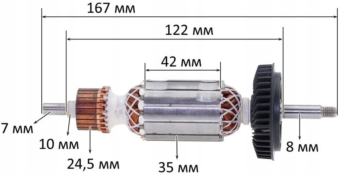 - Średnica komutatora: 24,5 mm