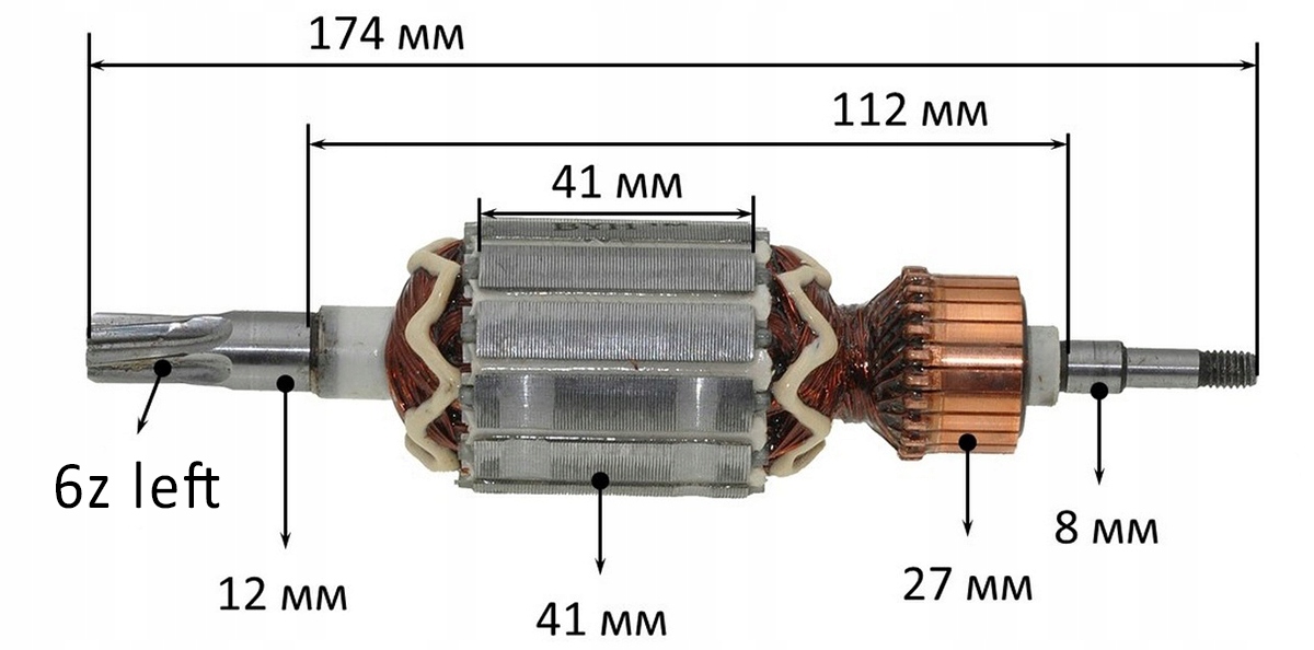 - Średnica komutatora: 26,5 mm
