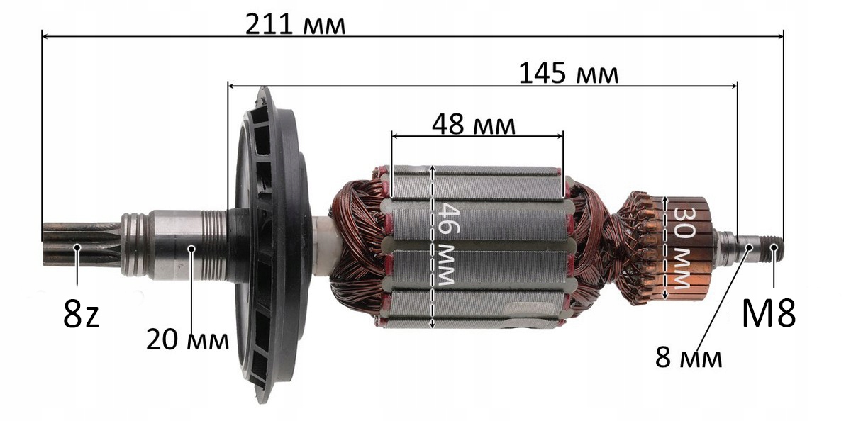 Wirnik młota udarowego Bosch GBH 7 DE 211mm, Ø46,5mm, 8-z odp 1614010213