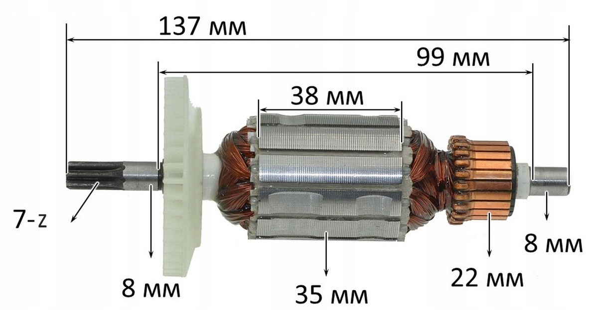 - Średnica komutatora: 22 mm