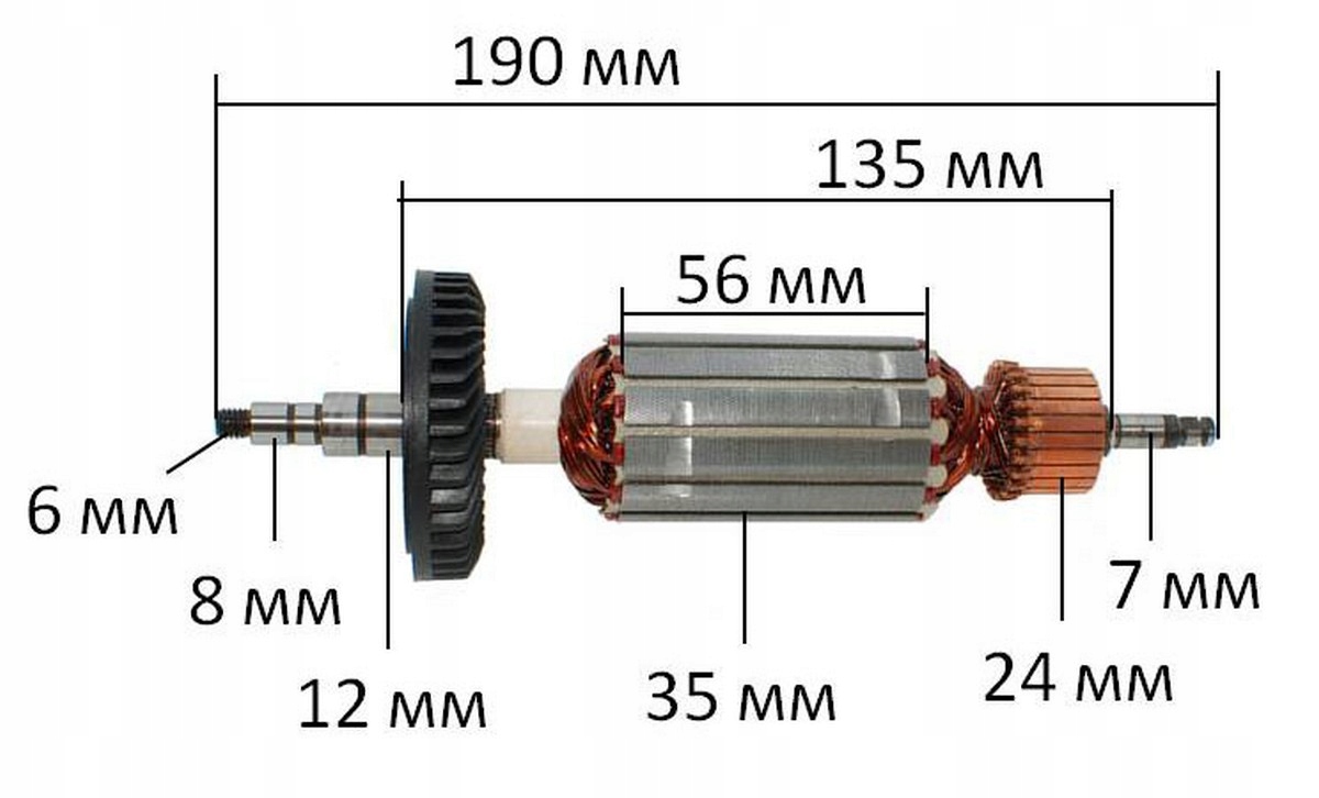 - Średnica komutatora: 24,5 mm