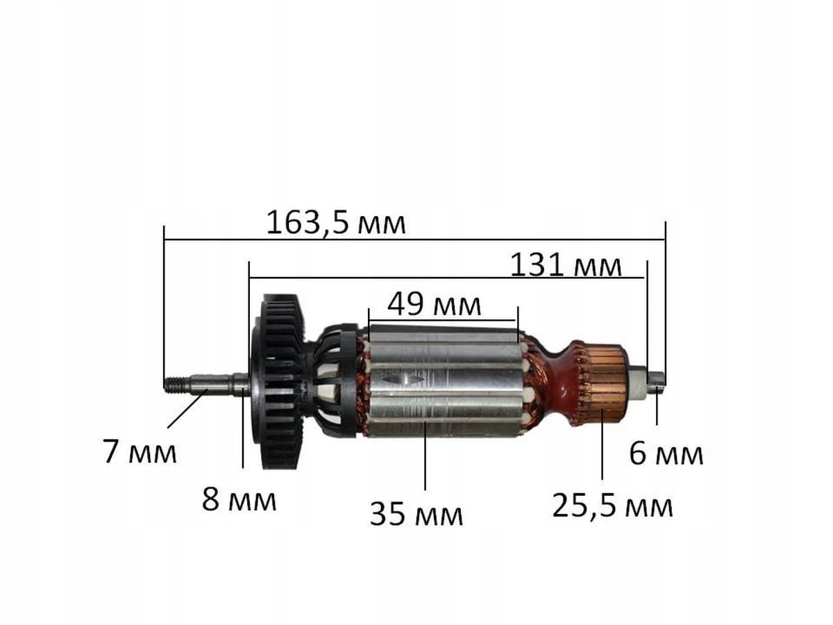- Średnica komutatora: 25,5 mm
