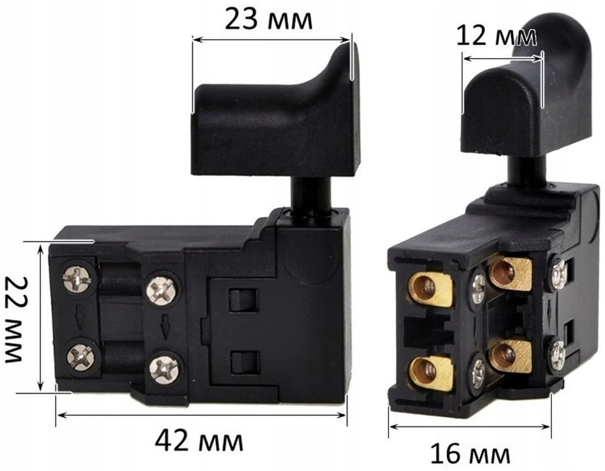 Włącznik/wyłącznik młotowiertarki beczkowej Zenit Profi ZPP-1000, mały gwint, 23×12 mm, 6A