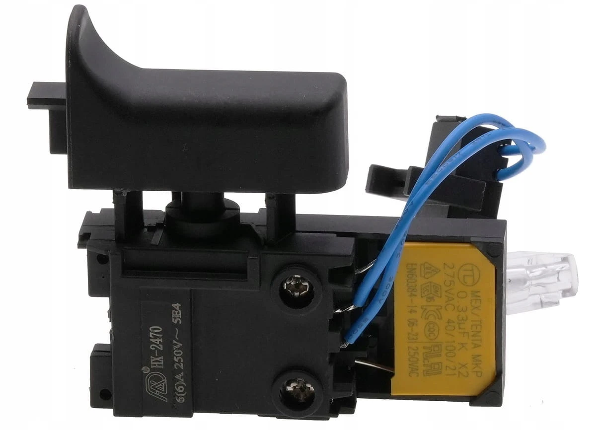 Przycisk sterujący do młota udarowego Mkt 2470 to wysokiej jakości element elektryczny, który umożliwia płynną kontrolę pracy urządzenia. Wykonany z trwałych materiałów, zapewnia odporność na duże obciążenia i długą eksploatację.
