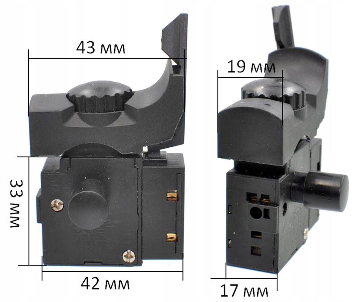 Włącznik/wyłącznik do młotowiertarki Zenit 42×17×33 mm 8A z blokadą (kn344)