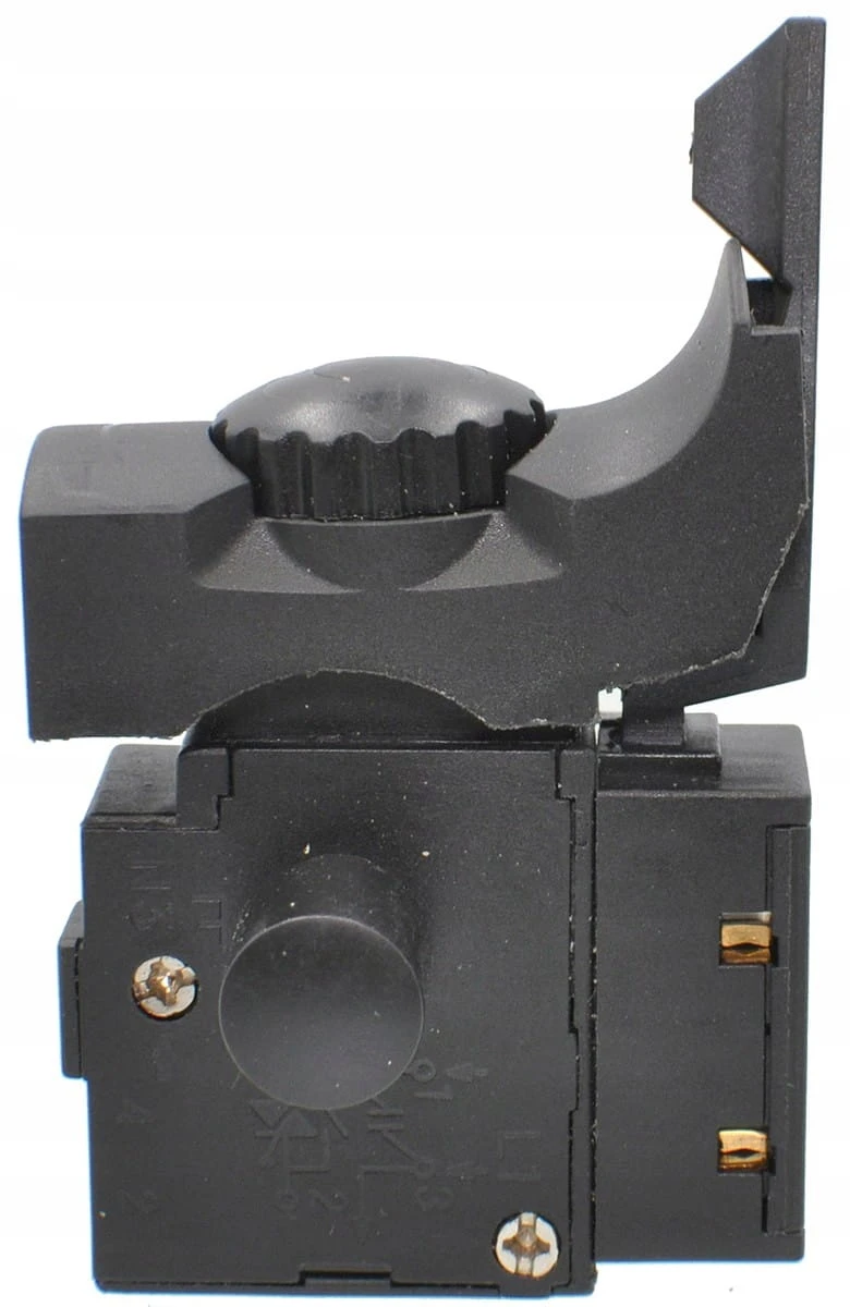 Włącznik/wyłącznik przeznaczony do młotowiertarki Zenit ZPP-1200 Profi oraz wiertarki Zenit ZDP-500 Profi. Wyposażony w klawisz 43×19 mm i podstawę 42×17×33 mm. Obsługuje prąd znamionowy 8 A i posiada funkcję blokady, co zapewnia wygodną i bezpieczną eksploatację. Trwały, niezawodny i prosty w montażu — idealny jako część zamienna.
