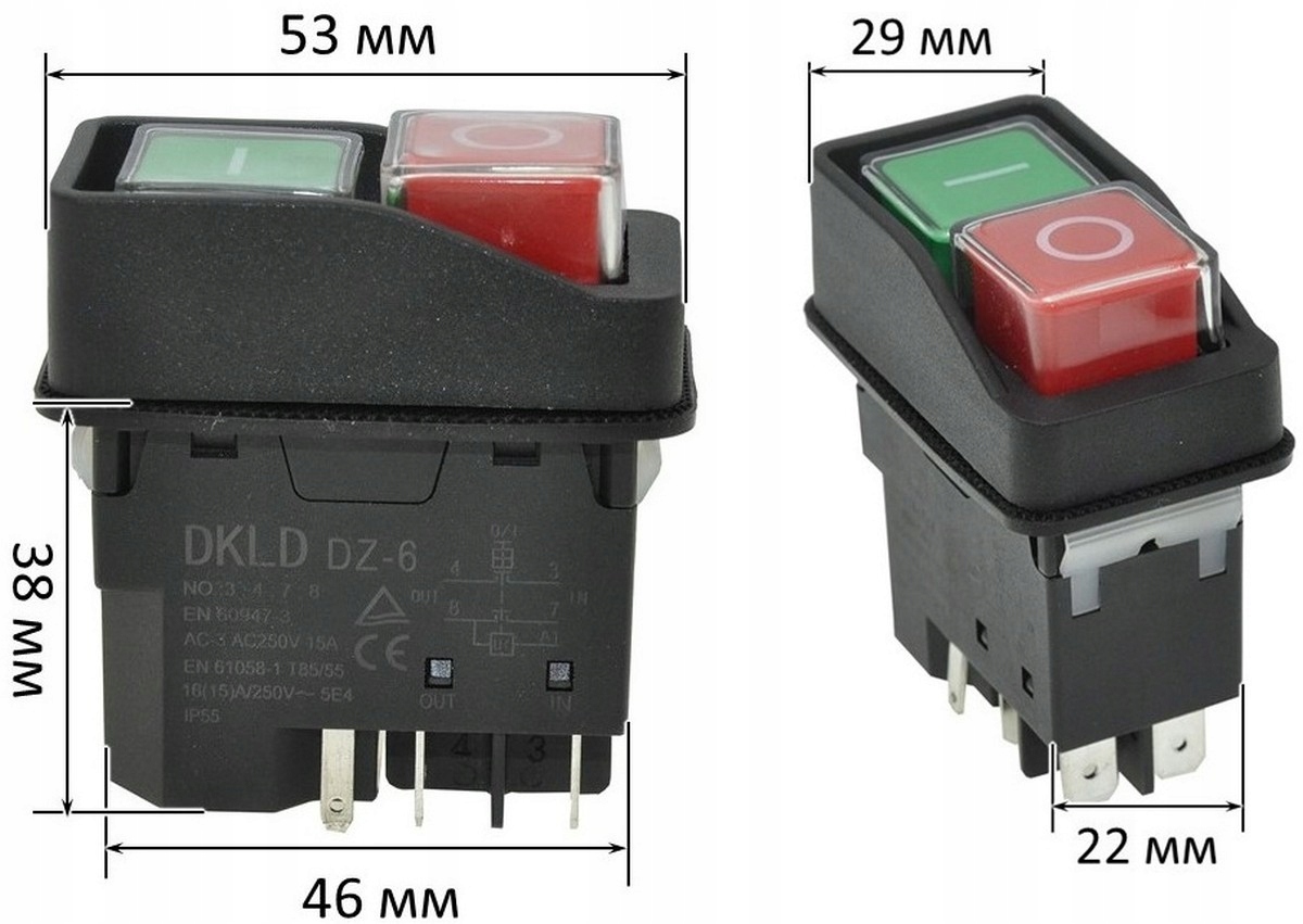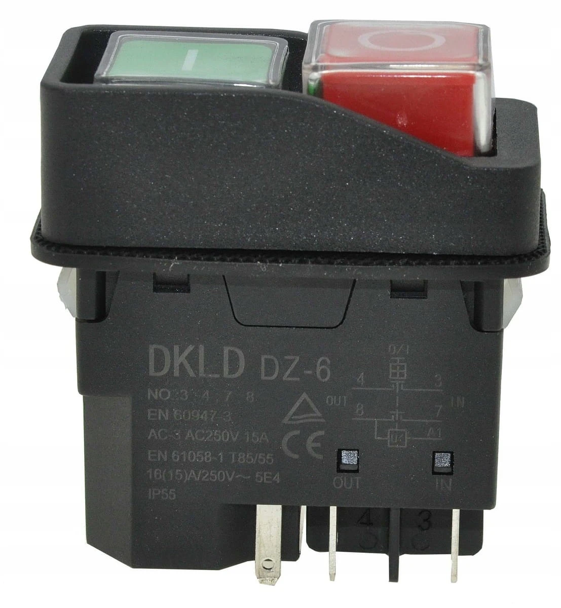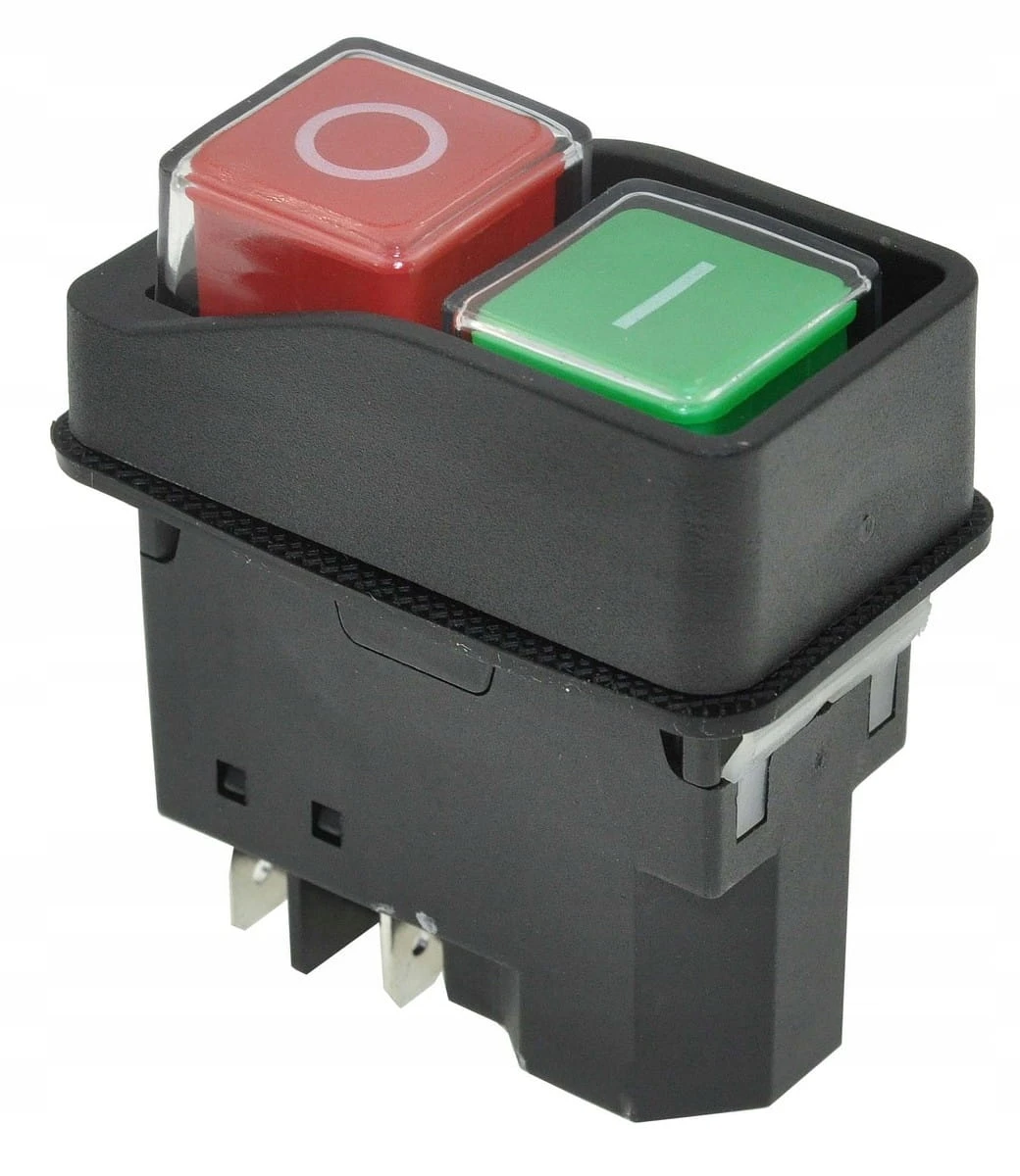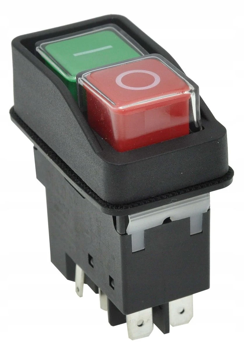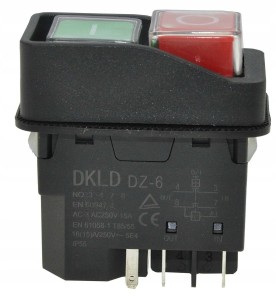 Wyłącznik do betoniarki z 5 stykami, czarny. Przeznaczony do sterowania pracą urządzeń – uruchamiania i wyłączania. Korpus o kompaktowych wymiarach pozwala na montaż w panelach sterowniczych bez dużych cięć.