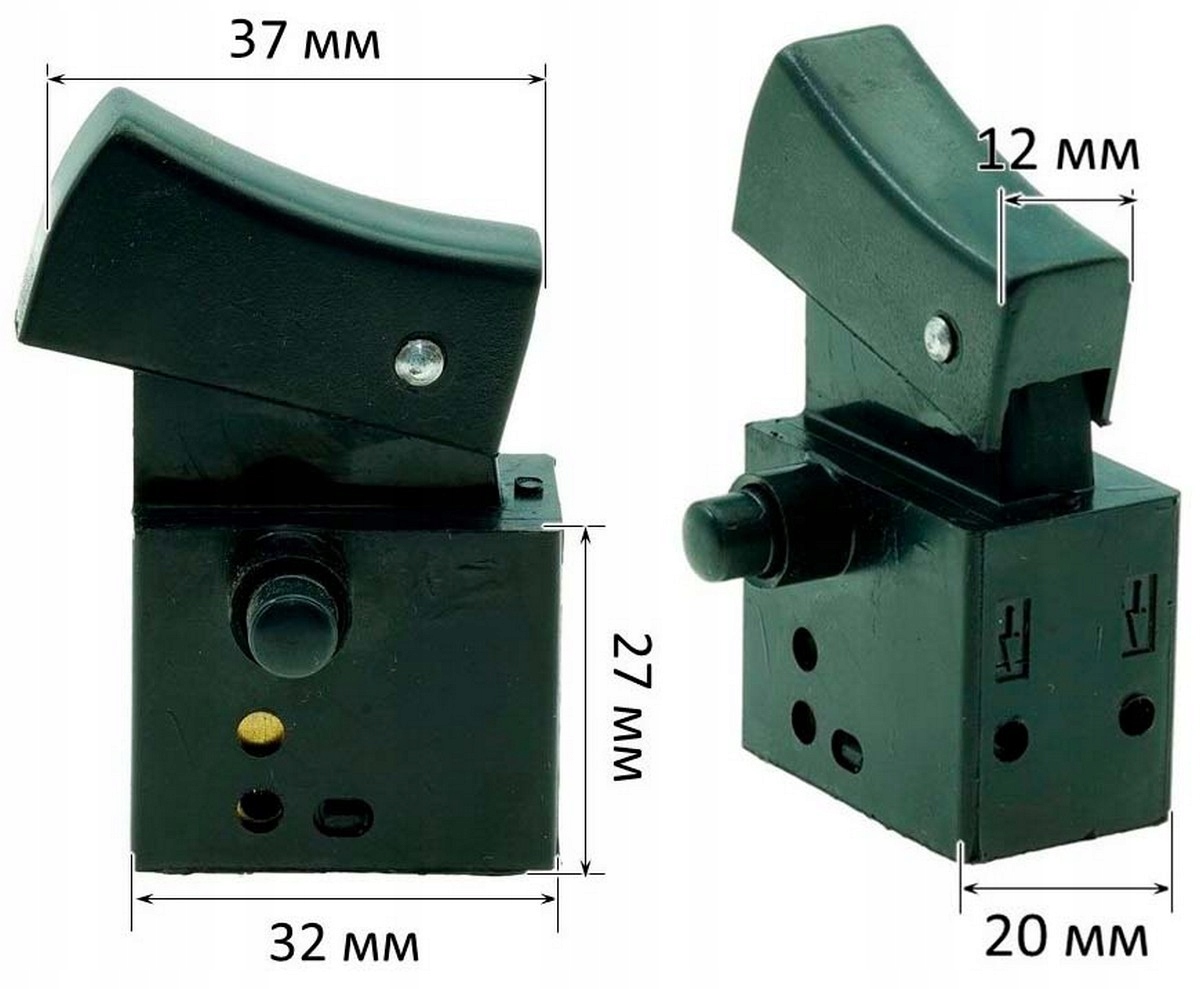 Wyłącznik do szlifierki kątowej 180 wyposażony w 4 styki i funkcję blokady. Posiada klawisz o wymiarach 37×12 mm oraz podstawę 32×20×27 mm, co zapewnia łatwą instalację i wygodną obsługę. Dzięki natężeniu znamionowemu 6 A i solidnej konstrukcji nadaje się do intensywnej eksploatacji.