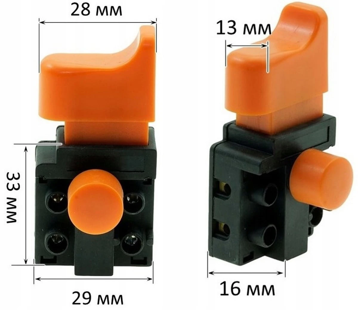 Wyłącznik przeznaczony do szlifierki Zenit ZVШ-350 oraz Powertec PT-1602/PT-1604. Posiada klawisz o wymiarach 28×13 mm i podstawę 29×16×33 mm. Działa przy natężeniu 8 A. Trwały i prosty, idealny jako część zamienna.