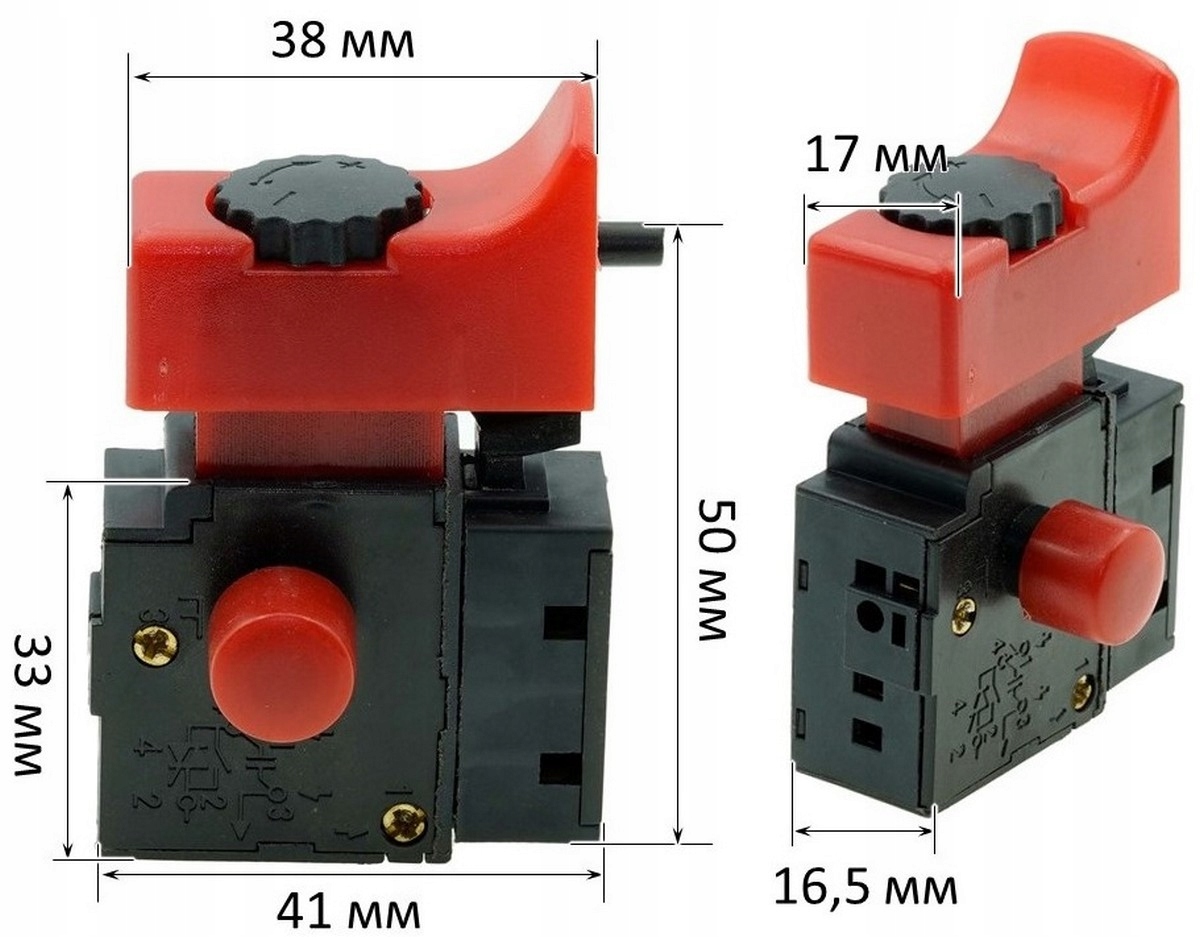 Wyłącznik przeznaczony do wiertarek Waller / Dexter Power 900 W oraz podobnych modeli. Charakteryzuje się klawiszem o wymiarach 38×17 mm, podstawą 41×16,5×33 mm i rewersem wysokości 50 mm. Obsługuje prąd żądany 8 A i posiada funkcję blokady. Idealny jako część zamienna zapewniająca trwałość oraz komfort użytkowania.