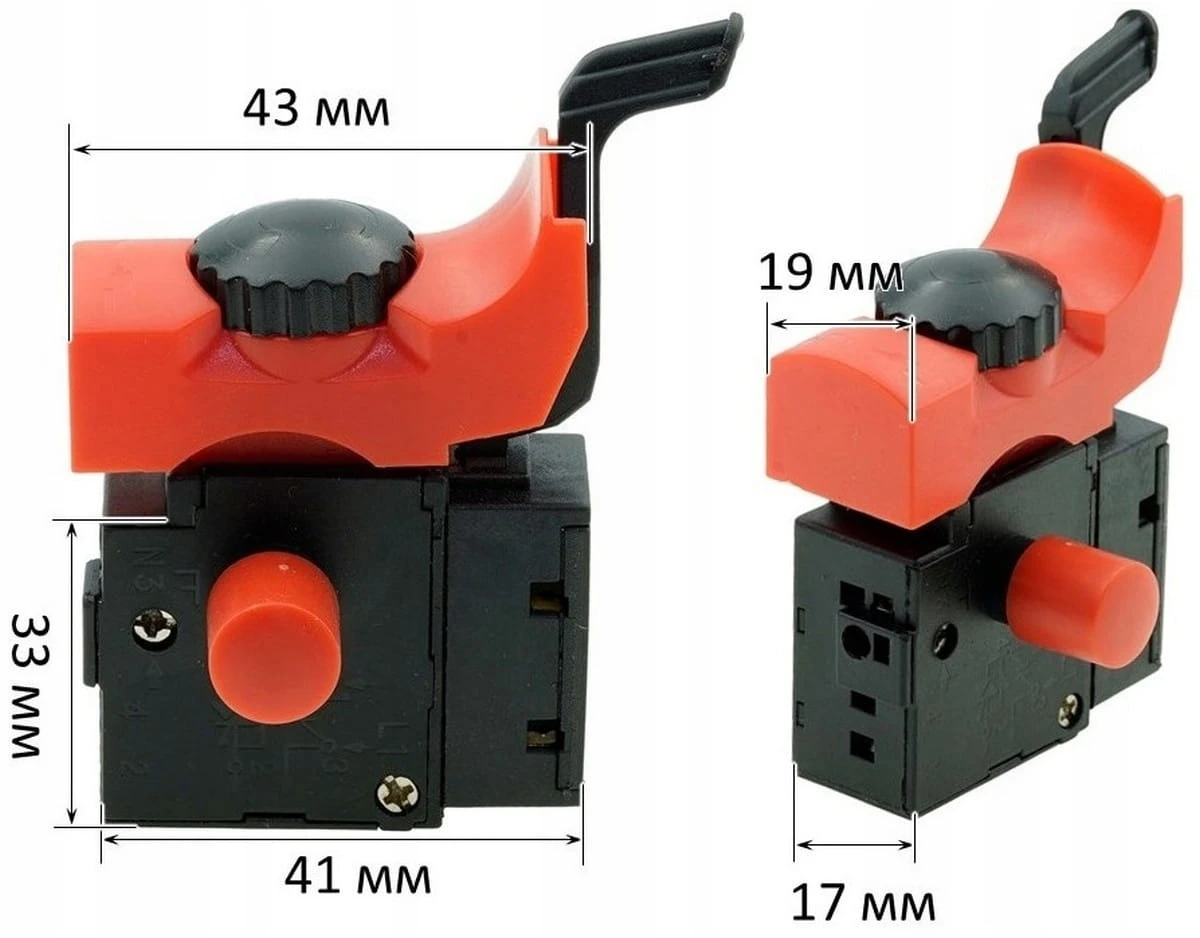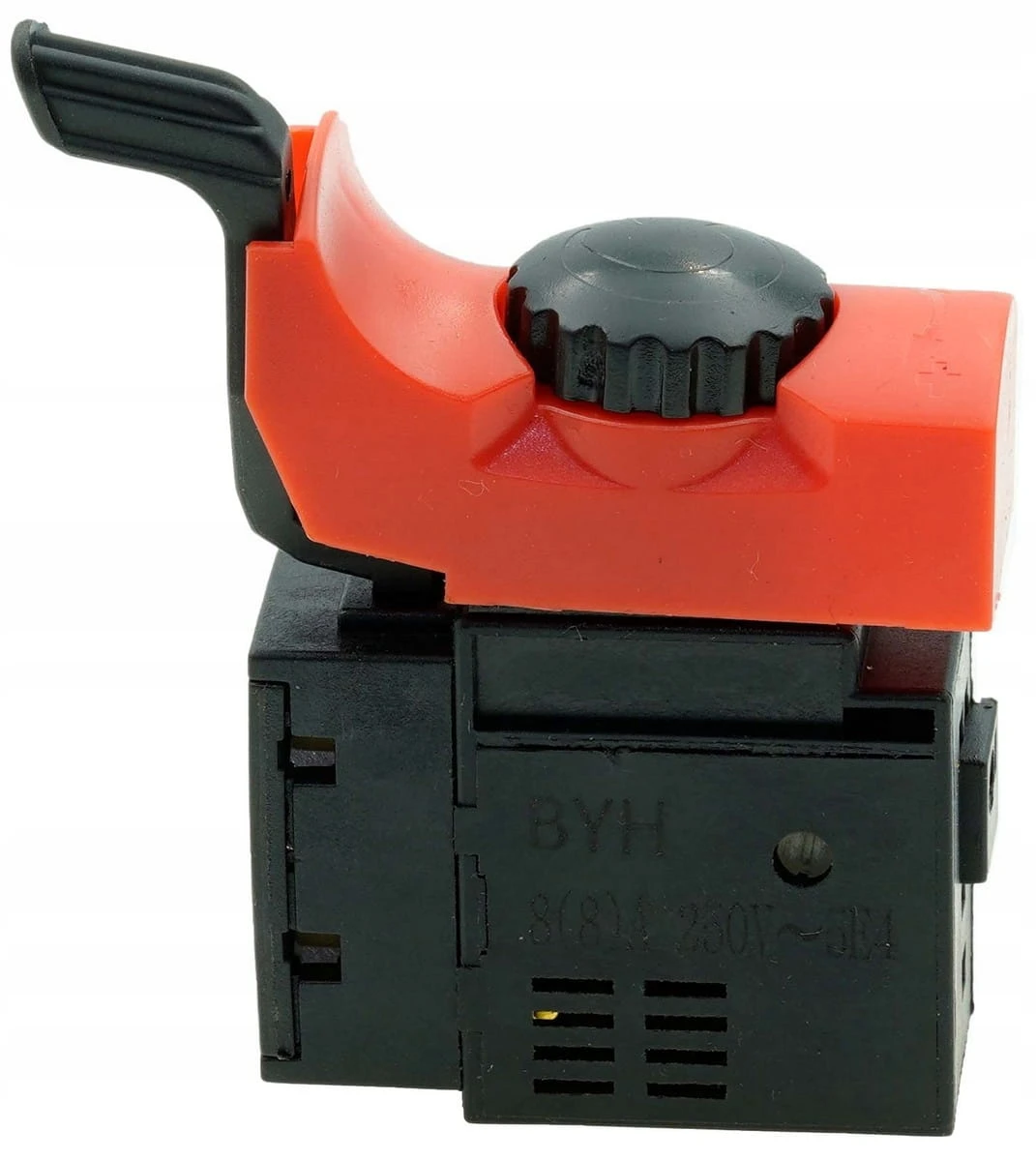 Wyłącznik przeznaczony do wiertarek Wintech. Wyposażony w klawisz 43×19 mm i podstawę 41×17×33 mm. Obsługuje prąd znamionowy 8 A oraz posiada blokadę, co czyni go idealnym zamiennikiem w elektronarzędziach.