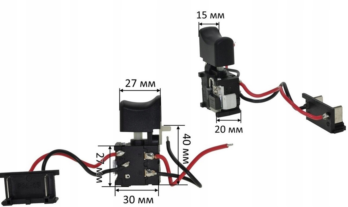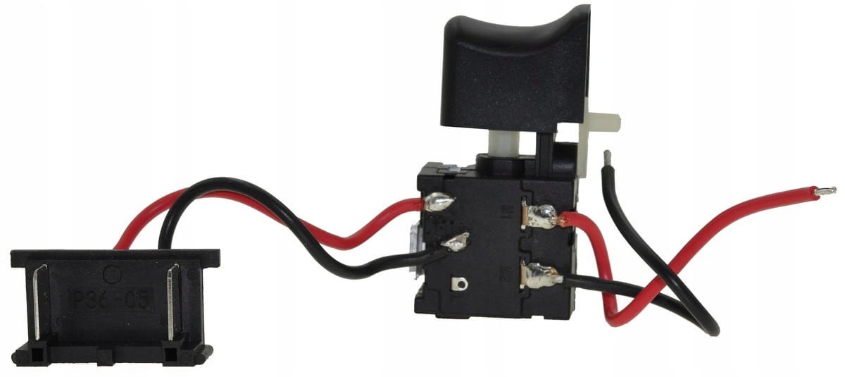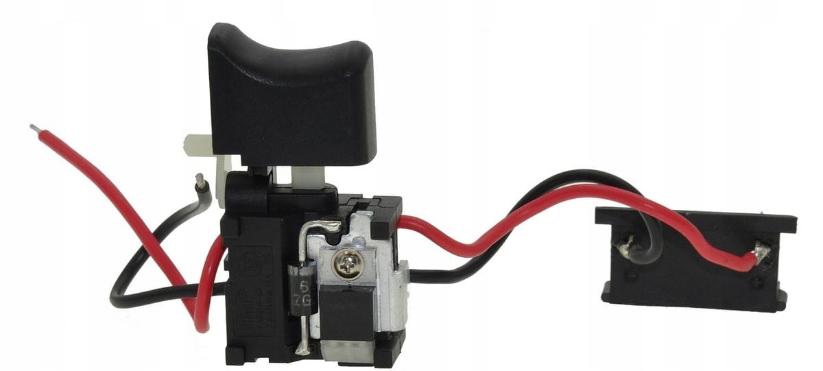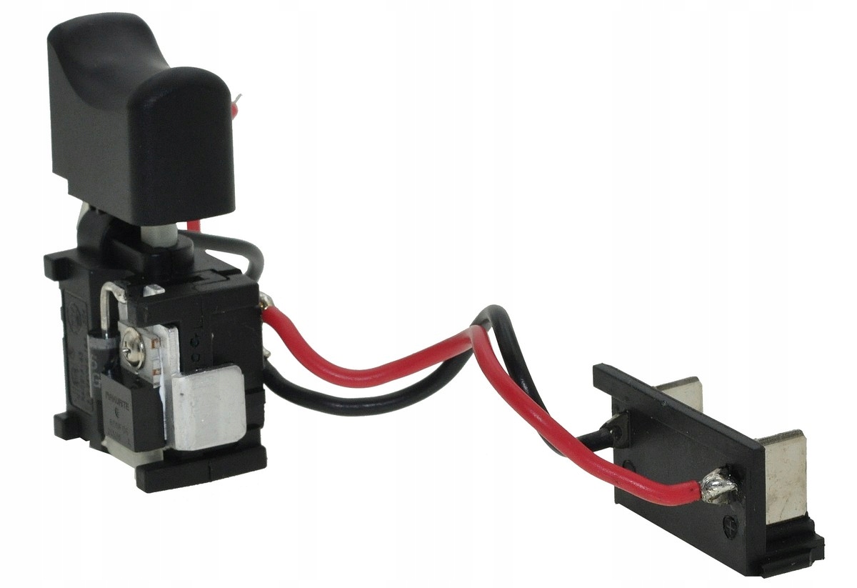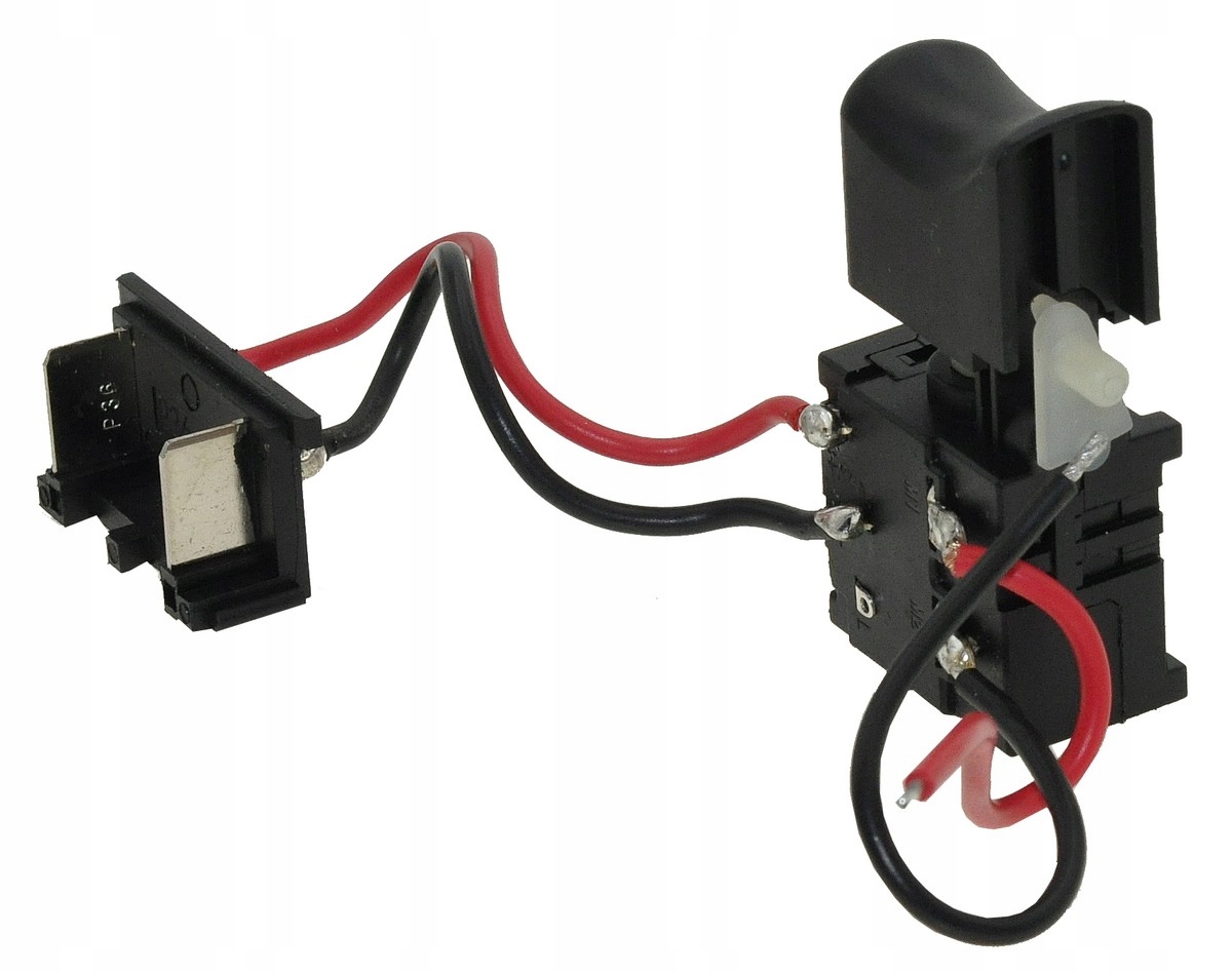 Wyłącznik przeznaczony do wkrętarki Tekhmann TCD-12 Li. Posiada klawisz o wymiarach 27×15 mm, podstawę 30×20×27 mm oraz mechanizm rewers o wysokości 40 mm. Obsługuje prąd 16 A i działa bez funkcji blokady (bez utrzymania wciśnięcia).