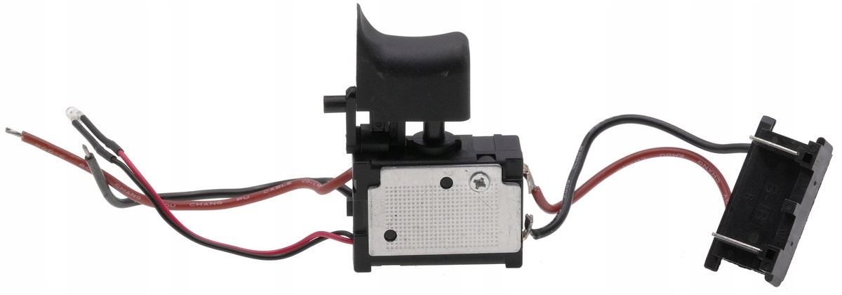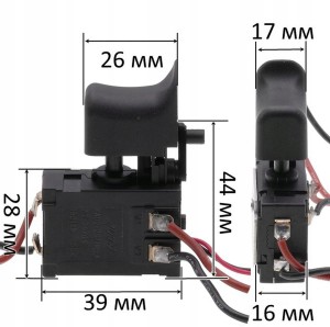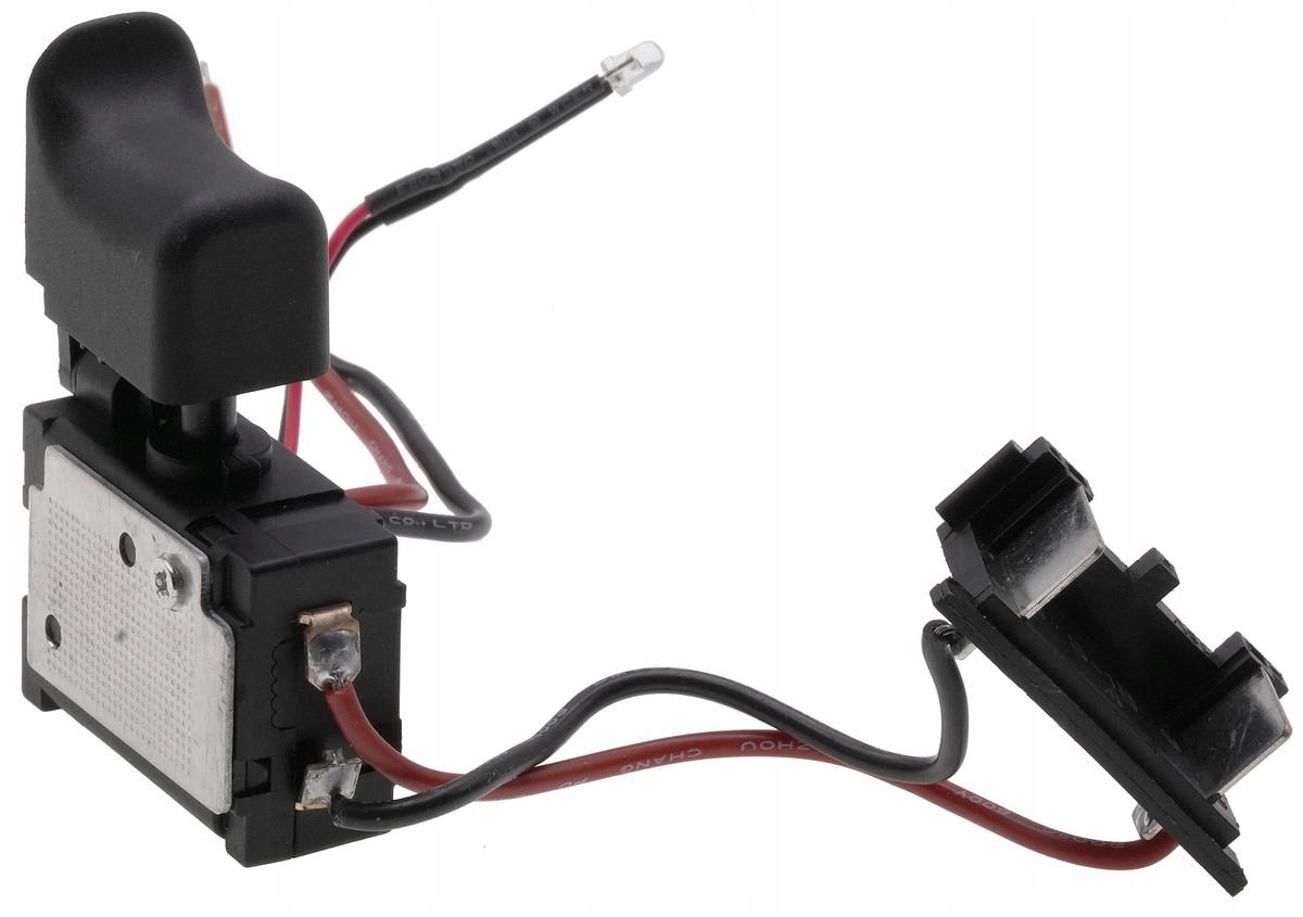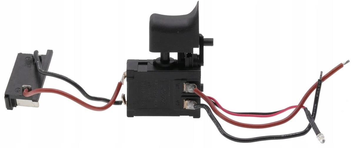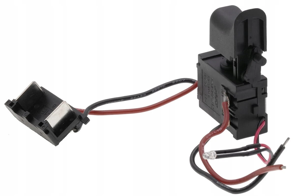 Wyłącznik przeznaczony do wkrętarek. Wyposażony w przewód i kostkę, co ułatwia instalację. Posiada klawisz o wymiarach 26×17 mm, podstawę 39×16×28 mm oraz rewers o wysokości 44 mm. Obsługuje prąd znamionowy 16 A. Trwała i praktyczna część zamienna.