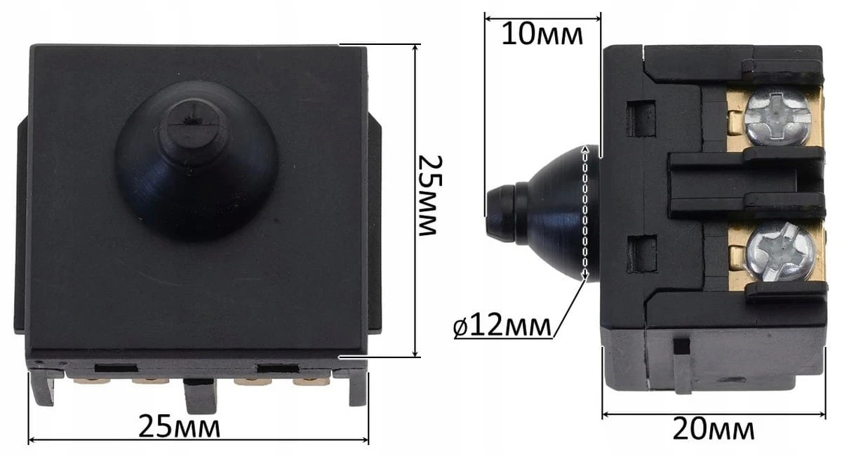 Wyłącznik szlifierki (4 styki) 25×25×20 mm, 8A, bez blokady