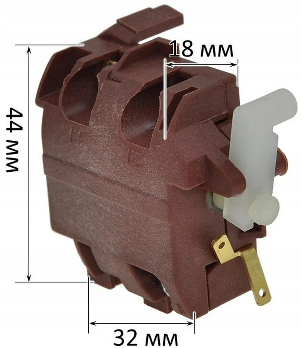 Wyłącznik szlifierki (4 styki) 29×16×33 mm, klawisz 54×22 mm, 10 A, z blokadą