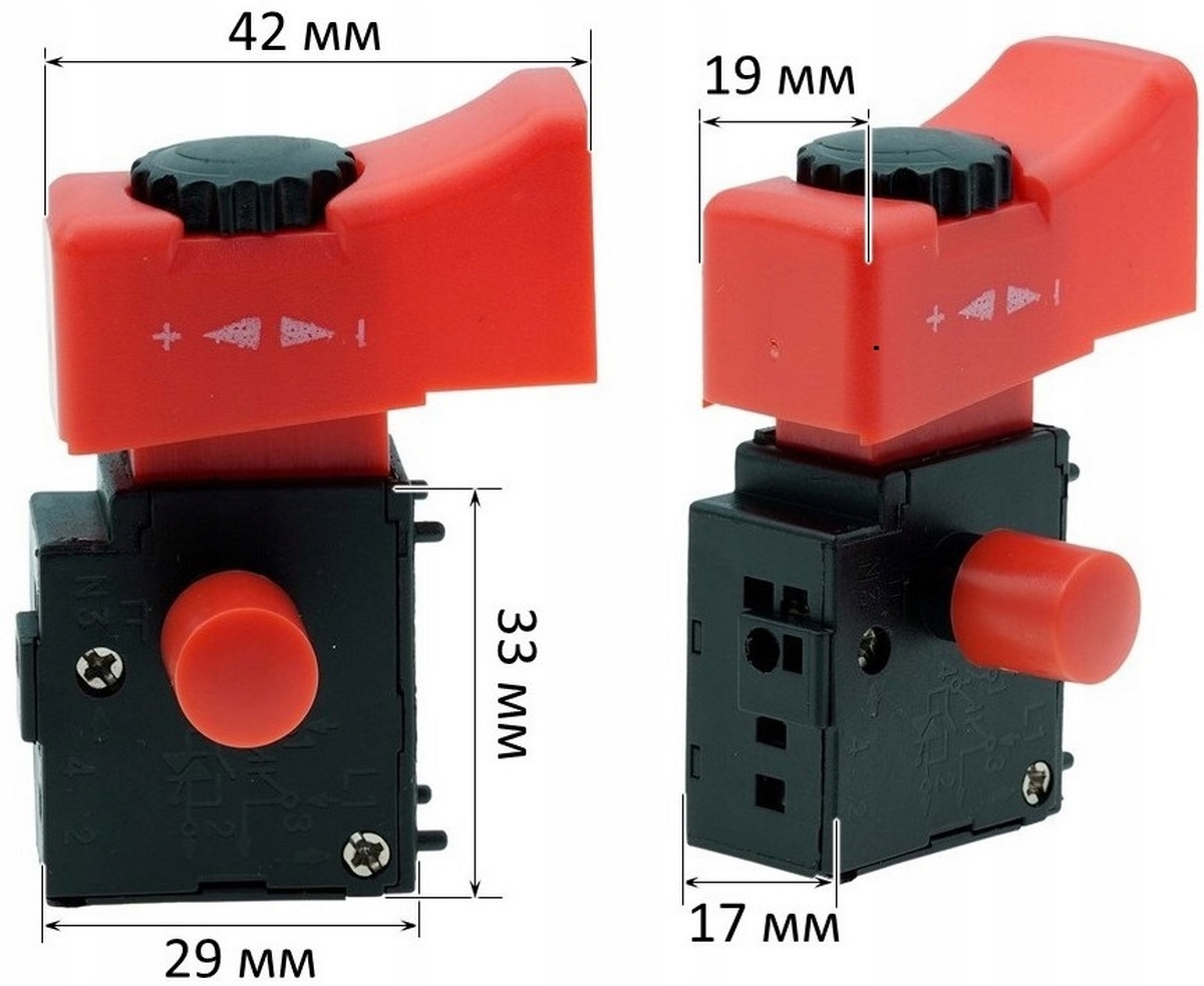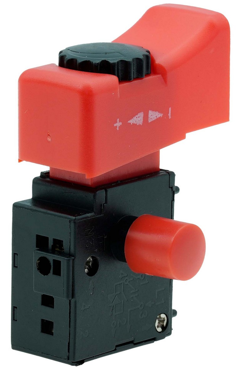 Wyłącznik szlifierki DWT 125 z regulacją (4 styki) 29×17×33 mm, klawisz 42×19 mm, 8 A, z blokadą