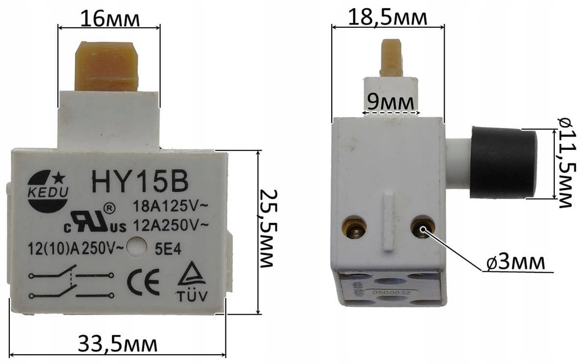 Wyłącznik szlifierki DWT 15 V 34,5×18,5×25,5 mm, 12 A (kn091)