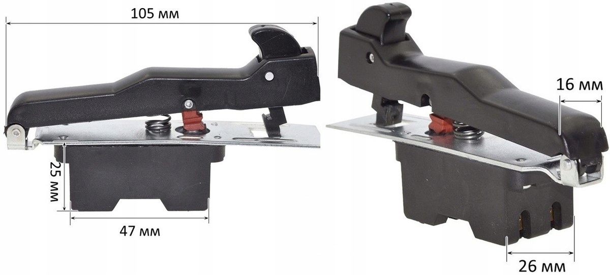 Wyłącznik szlifierki DWT 180 VS (4 styki) 34×19×26 mm, klawisz 76×11,5 mm, 10 A
