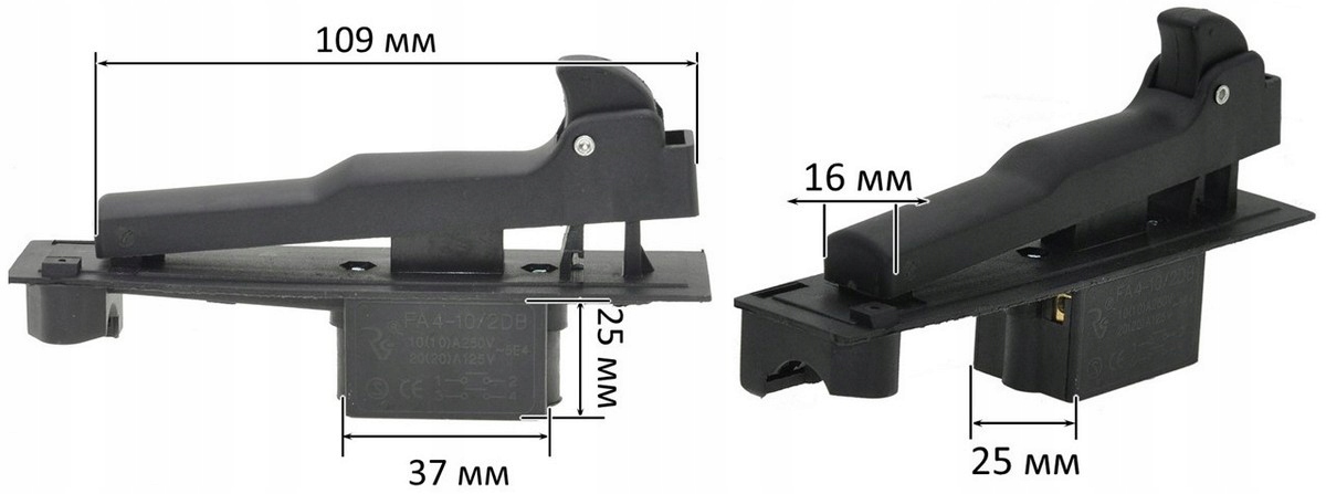 Wyłącznik szlifierki ZUSCH-230/2500 Profi (4 styki) 37×25×25 mm, klawisz 109×16 mm, 10 A, z blokadą