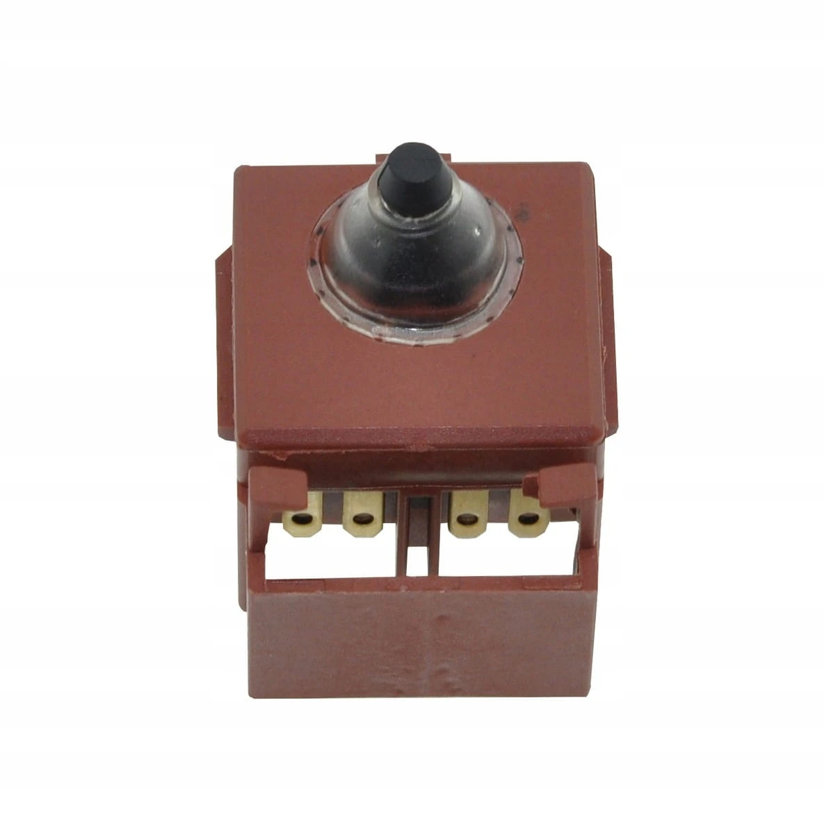 Wyłącznik do szlifierek kątowych Stern 115-E (153548). Wyposażony w 4 styki i podstawę o wymiarach 36×25×20 mm. Obsługuje prąd do 6 A, działa bez blokady. Niezawodna część zamienna do elektronarzędzi, przywracająca pełną funkcjonalność.