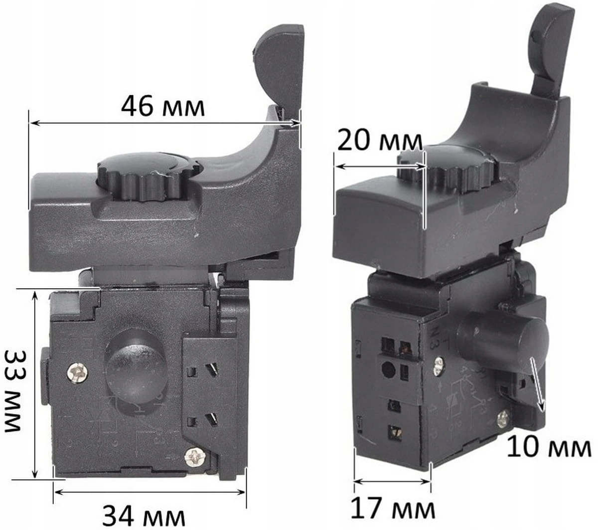 Wyłącznik wiertarki DWT 500-600 34×17×33 mm, 5 A, z blokadą (kn017)