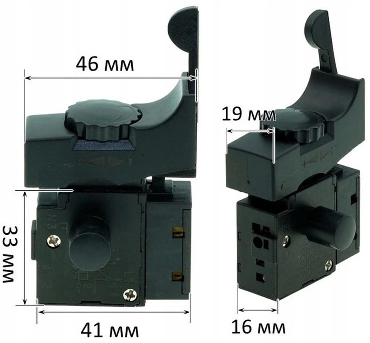 Wyłącznik wiertarki DWT 810W 41×16×33 mm, 8 A, z blokadą (kn019)