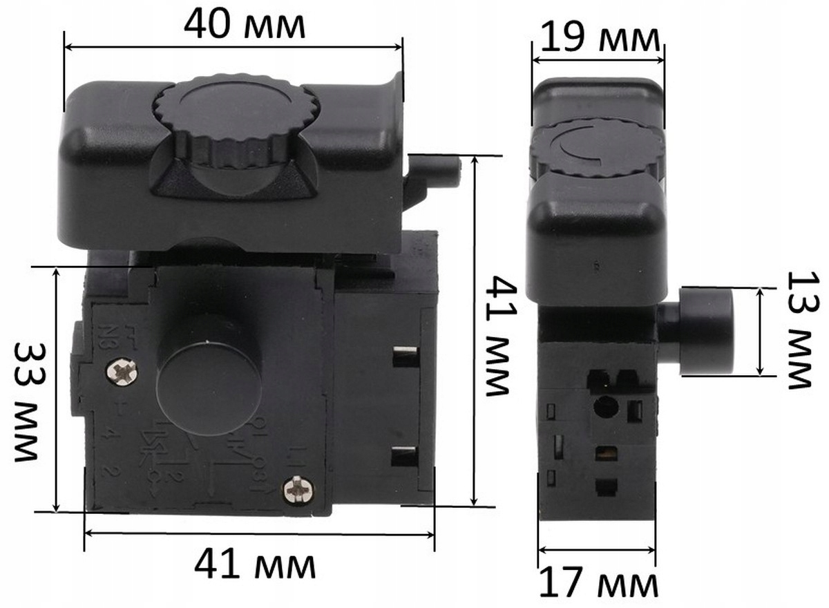 Wyłącznik wiertarki DWT 810W (nowy) 41×17×33 mm, klawisz 40×19 mm, 6 A ✅