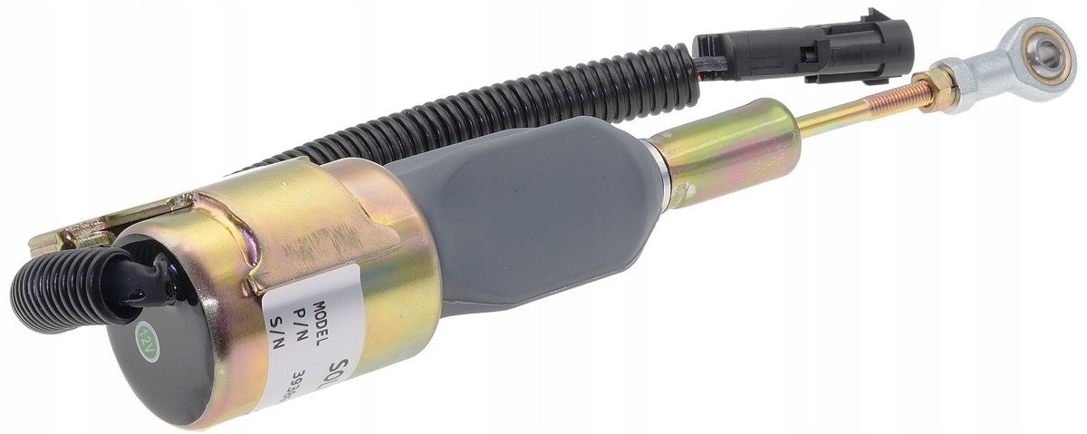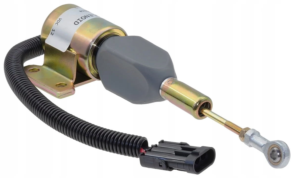 Elektromagnetyczny zawór paliwowy (solenoid) służący do zamykania dopływu paliwa w silnikach diesla Cummins typów 4BT i 6BT. Ten element zabezpiecza silnik przed niekontrolowanym podawaniem paliwa, pełniąc kluczową rolę w ochronie układu paliwowego i zapewniając bezpieczne zatrzymanie silnika.
