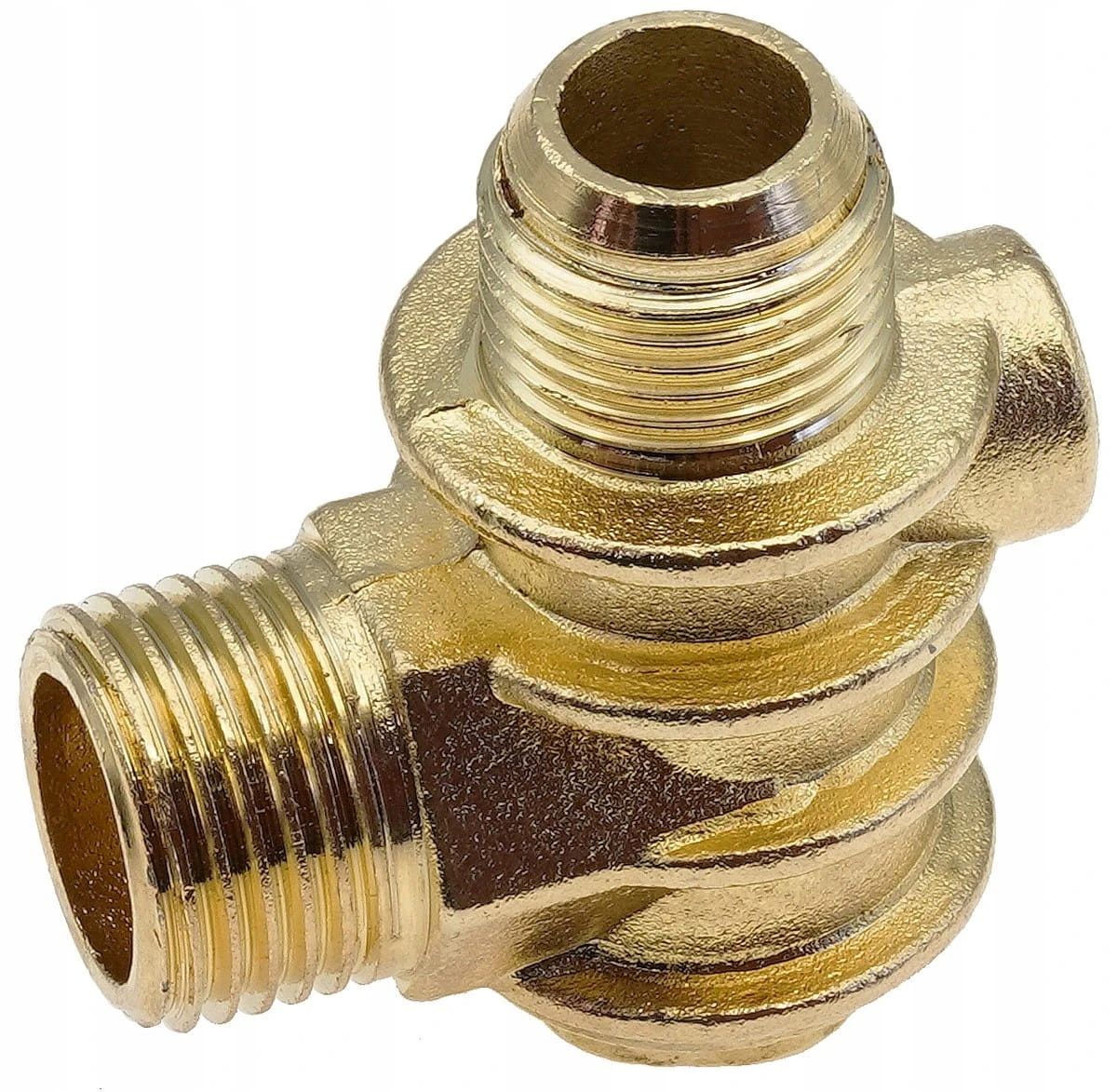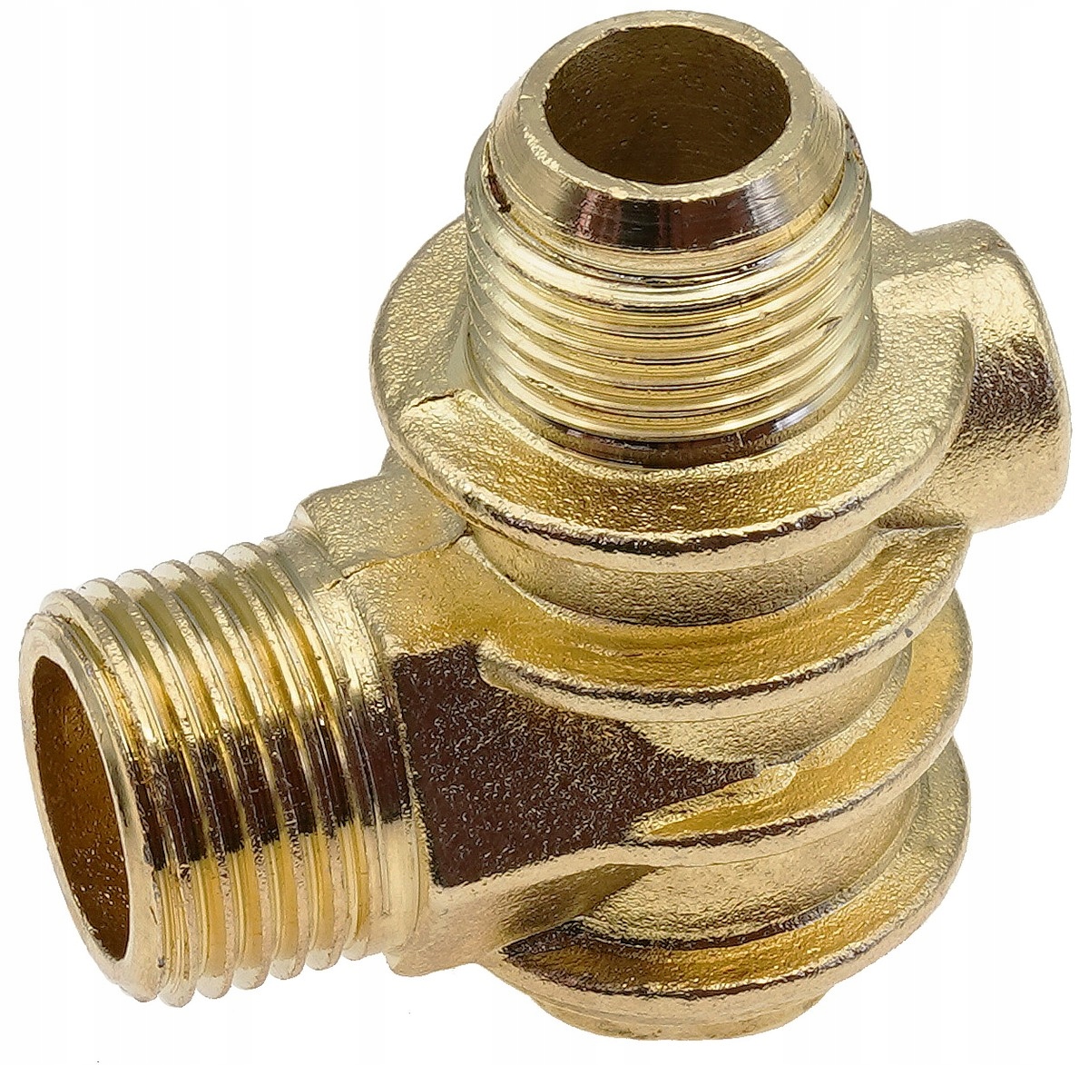 - Różnorodne przyłącza gwintowe – zewnętrzne gwinty Ø 19 mm i Ø 20,5 mm oraz wewnętrzny gwint Ø 9 mm — pasuje do różnych instalacji gazowych i pneumatycznych