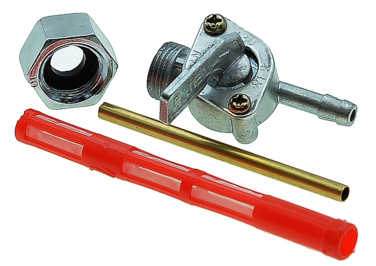 Zawór paliwowy stosowany w agregatach prądotwórczych i silnikach spalinowych, odpowiadający za regulację przepływu paliwa między zbiornikiem a gaźnikiem. Idealny jako część zamienna, przywracająca pełną funkcjonalność układu paliwowego.