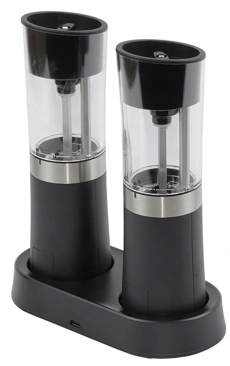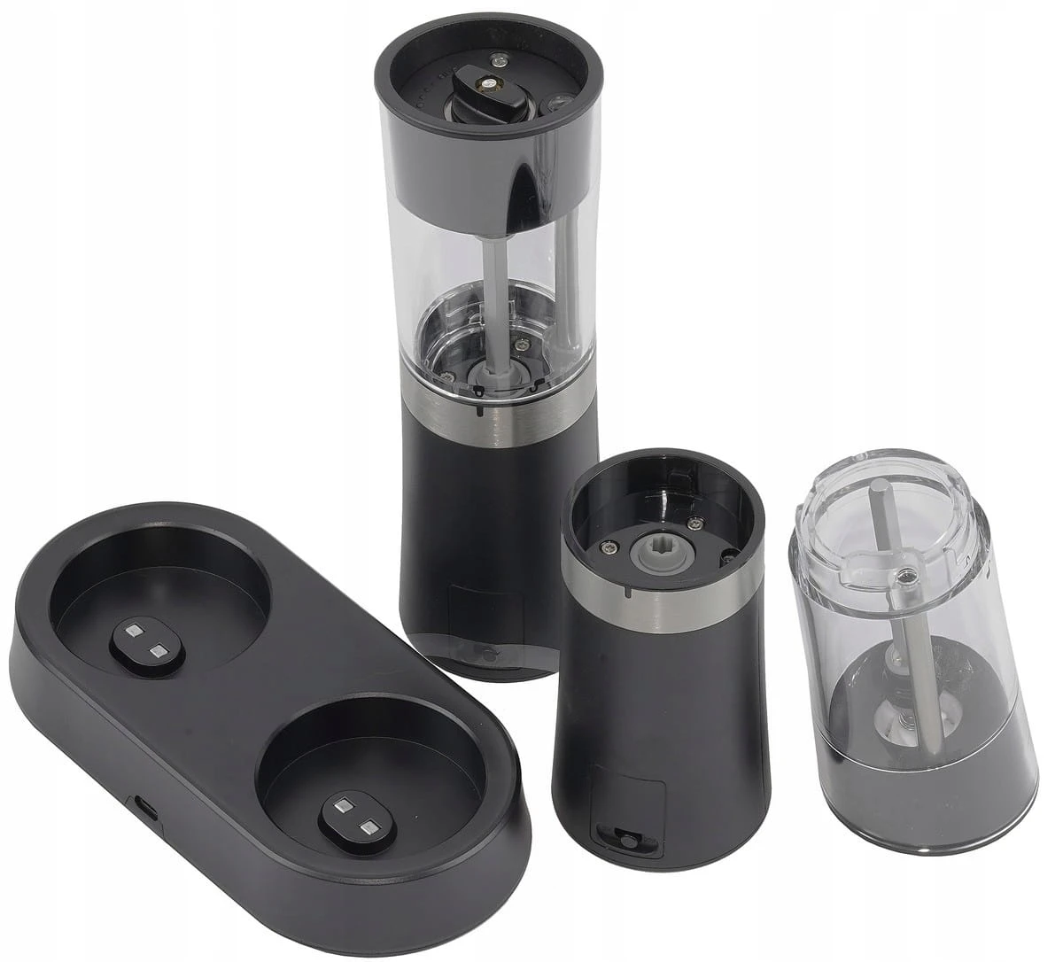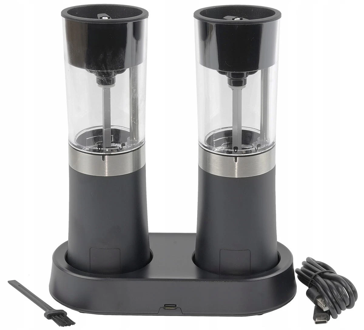 Opis produktu: Przedstawiamy zestaw dwóch nowoczesnych elektrycznych młynków do przypraw, wyposażonych w funkcję ładowania przez USB Type-C. Te eleganckie młynki zostały zaprojektowane z myślą o wygodzie użytkowania i estetyce, idealnie komponując się z każdą kuchnią.