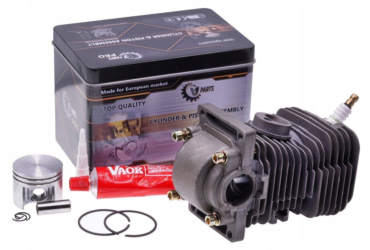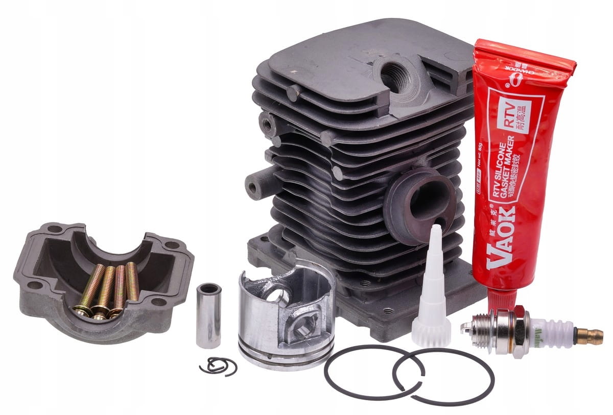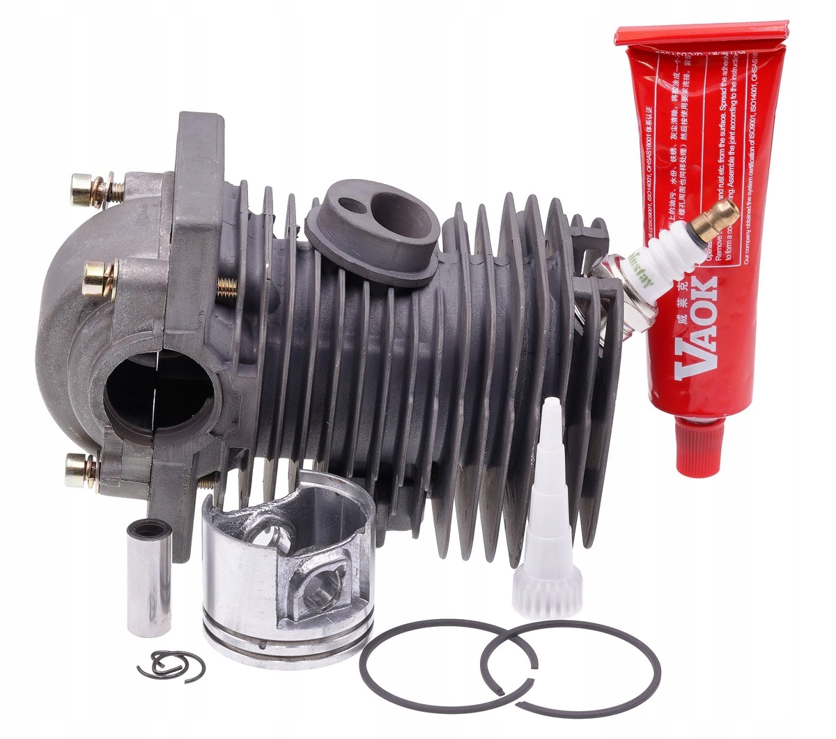 - Kompletny zestaw naprawczy – cylinder, tłok, pierścienie, sworzeń i zabezpieczenia.