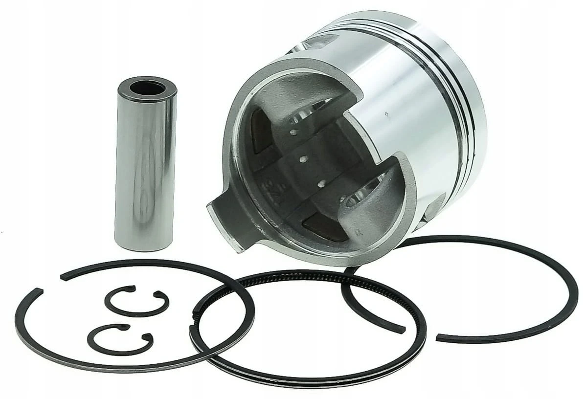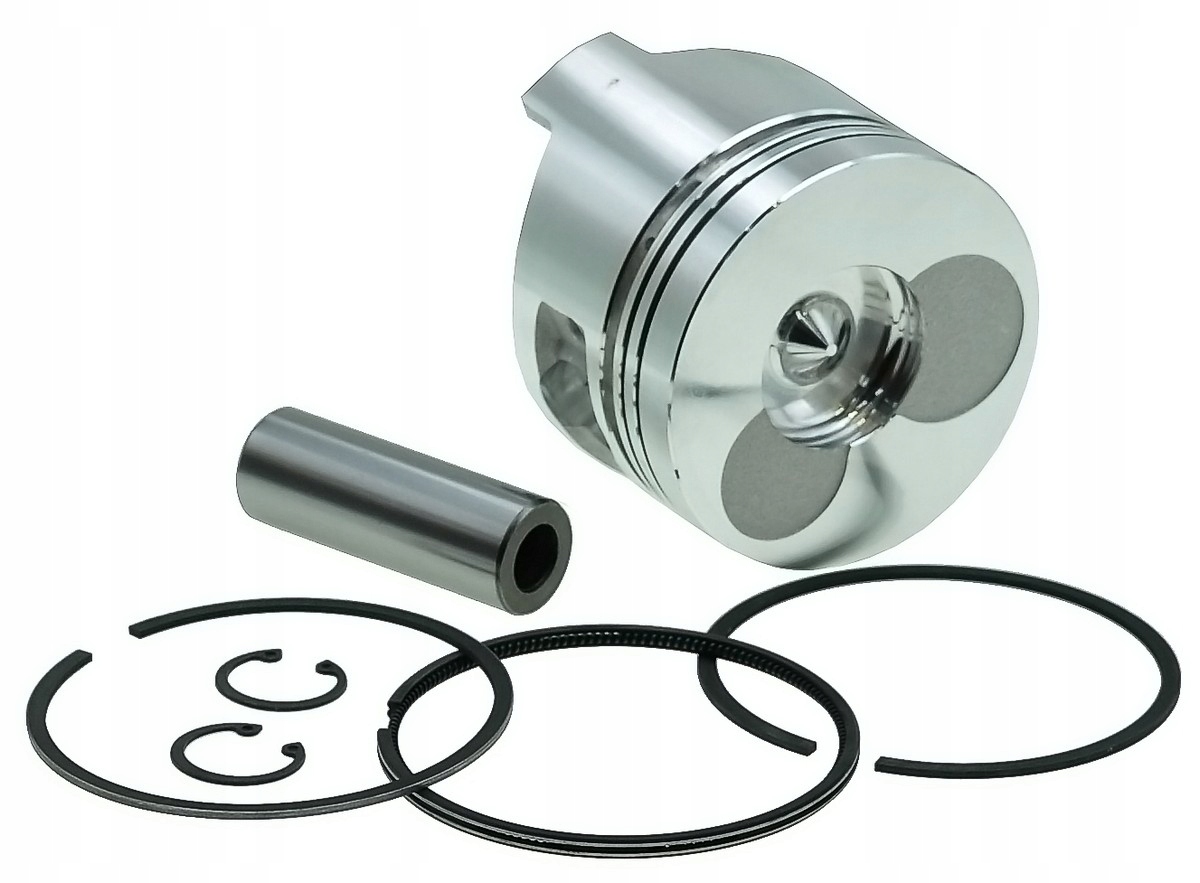- Kompletny zestaw – cylinder, tłok, pierścienie, sworzeń oraz zabezpieczenia, gotowy do montażu.