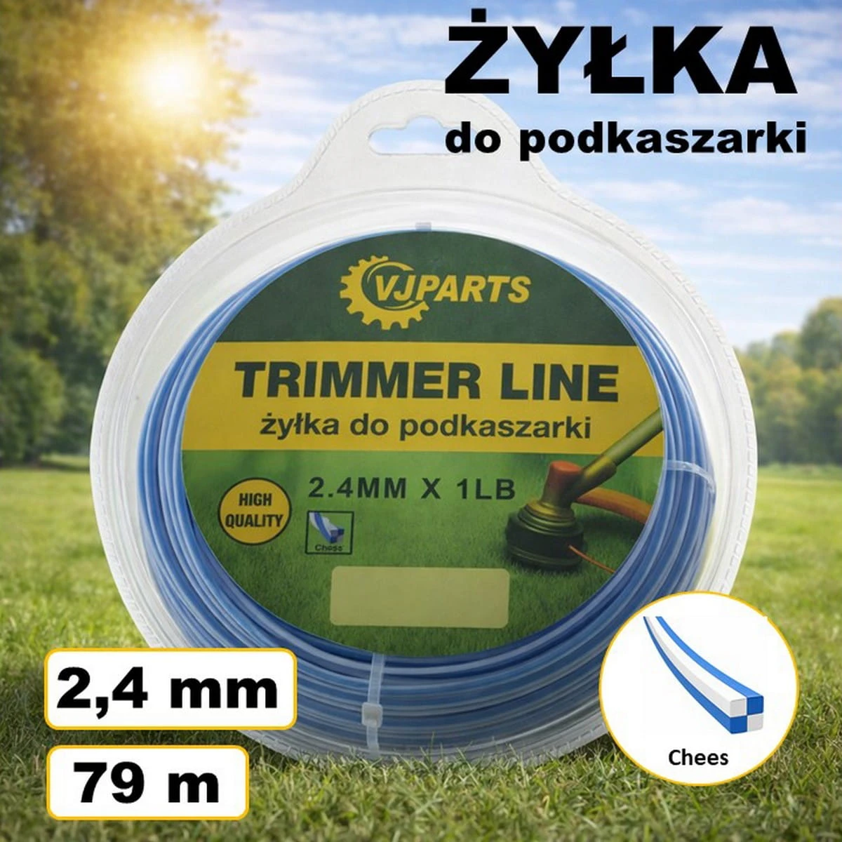 Żyłka VJParts do kosy kwadratowa dwukomponentowa (szachownica) 2,4mm * 79m (1 lb)