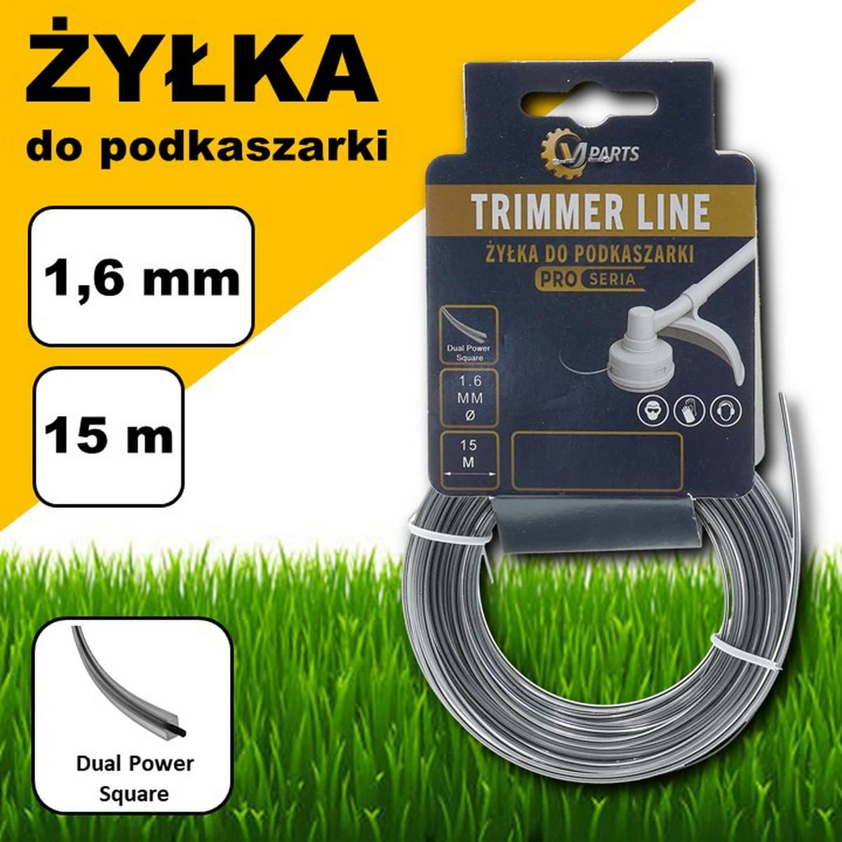 Żyłka VJParts do kosy kwadratowa z rdzeniem wzmacniajacym 1,6mm * 15m