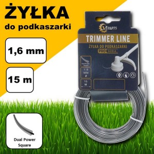 Żyłka do kosy / podkaszarki – kwadratowa z rdzeniem wzmacniającym 1,6 mm * 15 m
