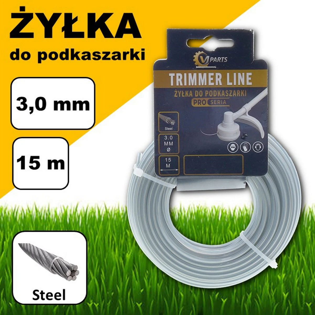 Żyłka VJParts do kosy okragla z linka stalowa 3,0mm * 15m
