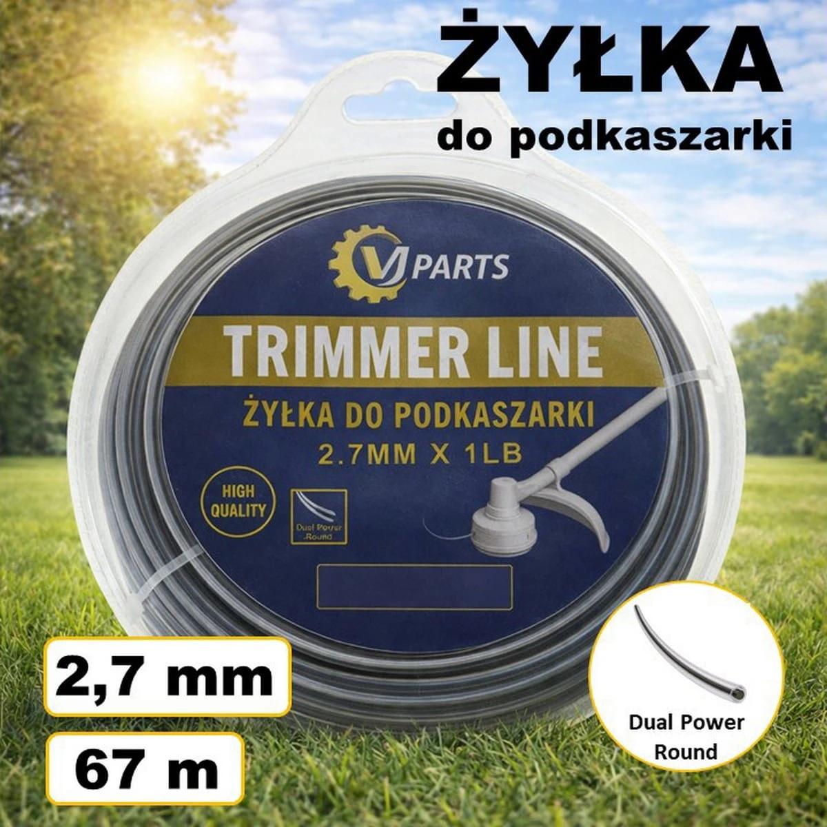 Żyłka VJParts do kosy okragla z rdzeniem wzmacniajacym 2,7mm * 67m (1lb)