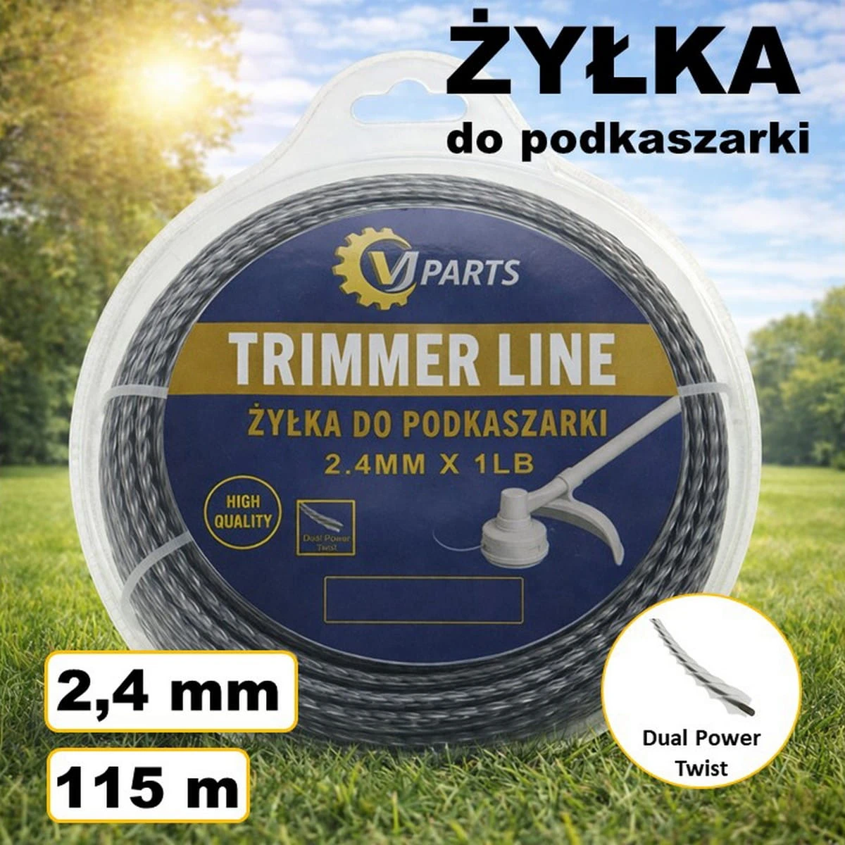 Żyłka VJParts do kosy skrecana z rdzeniem wzmacniajacym 2,4mm * 115m