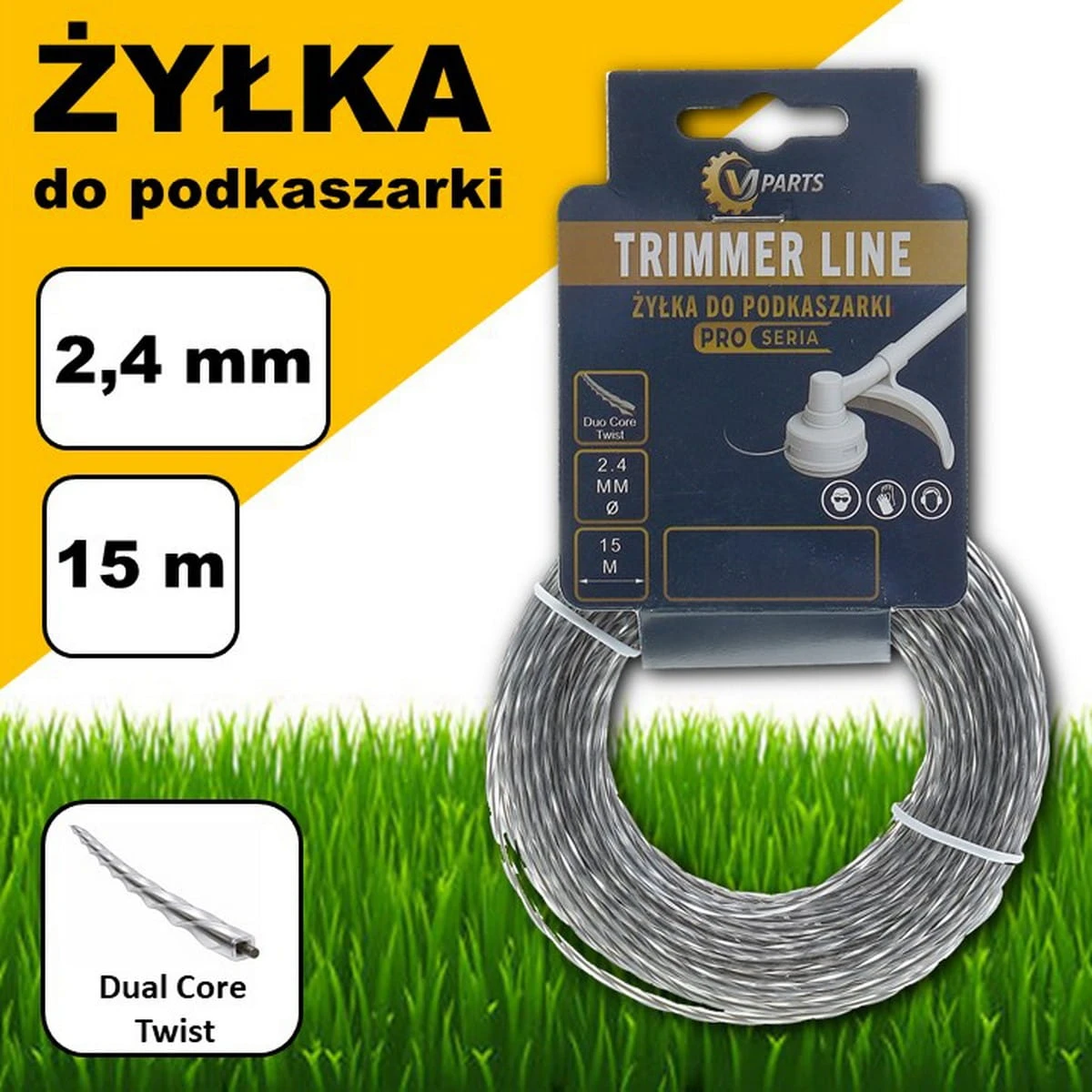 Żyłka VJParts do kosy skrecana z rdzeniem wzmacniajacym 2,4mm * 15m