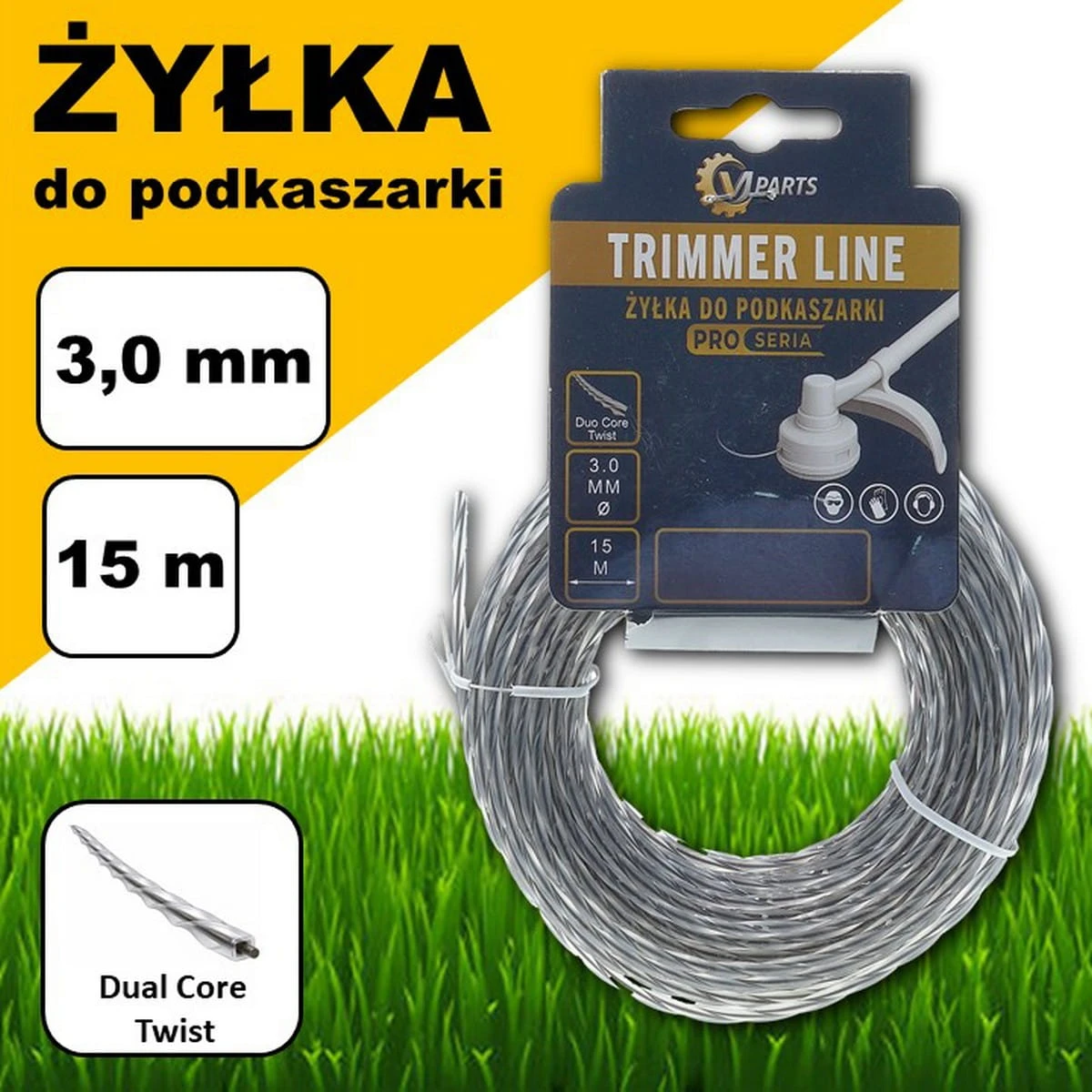 Żyłka VJParts do kosy skrecana z rdzeniem wzmacniajacym 3,0mm * 15m