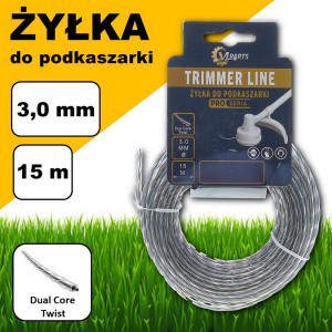Żyłka do kosy / podkaszarki – skręcana z rdzeniem wzmacniającym (spiralna) 3,0 mm * 15 m