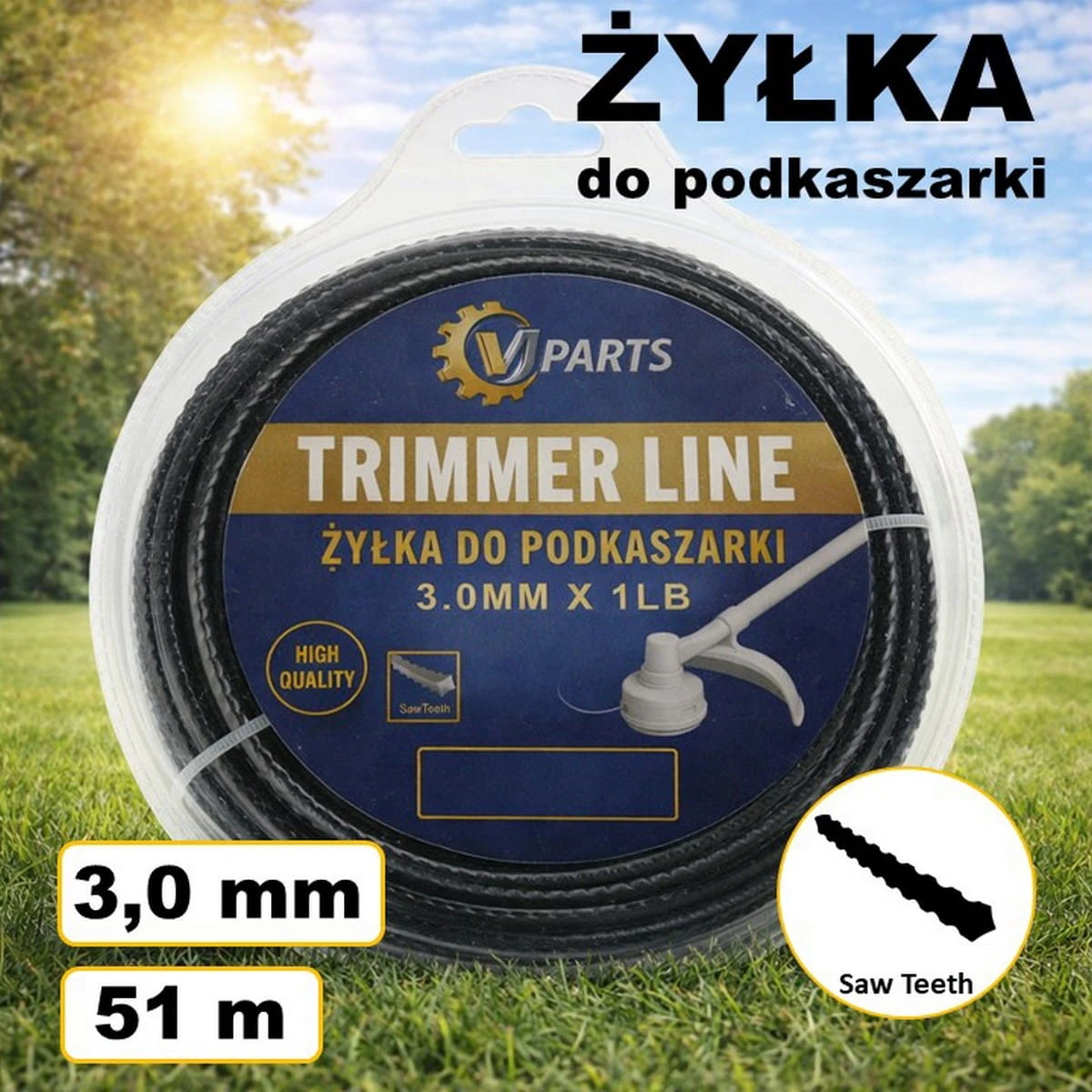 Żyłka VJParts do kosy zabkowana (krokodyl) 3,0mm * 51m (1lb)